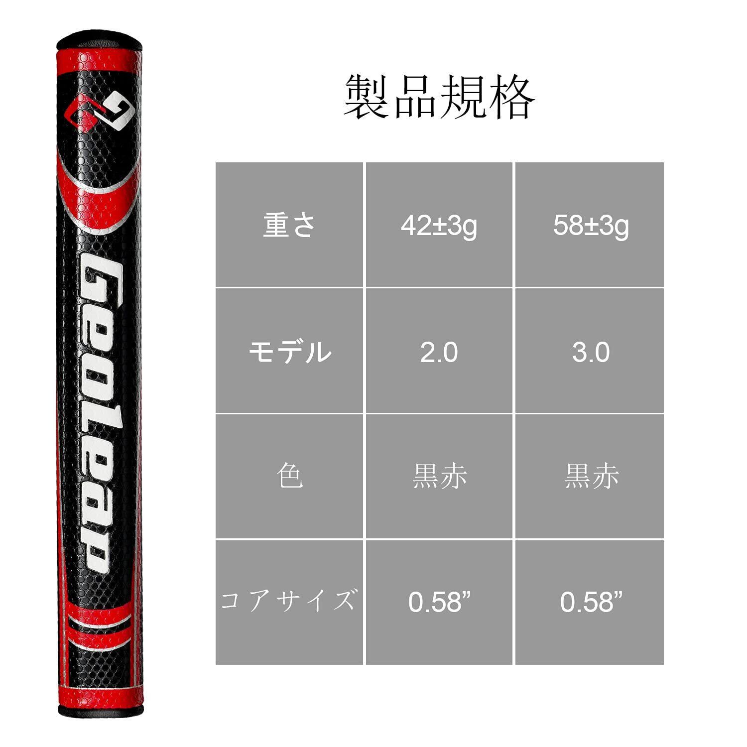 Geoleap パターグリップ-ソフトポリウレタン素材 ラウンド型 軽量ゴルフグリップ 4色 2サイズオプション (黒赤, スタンダードサイズ(2.0))