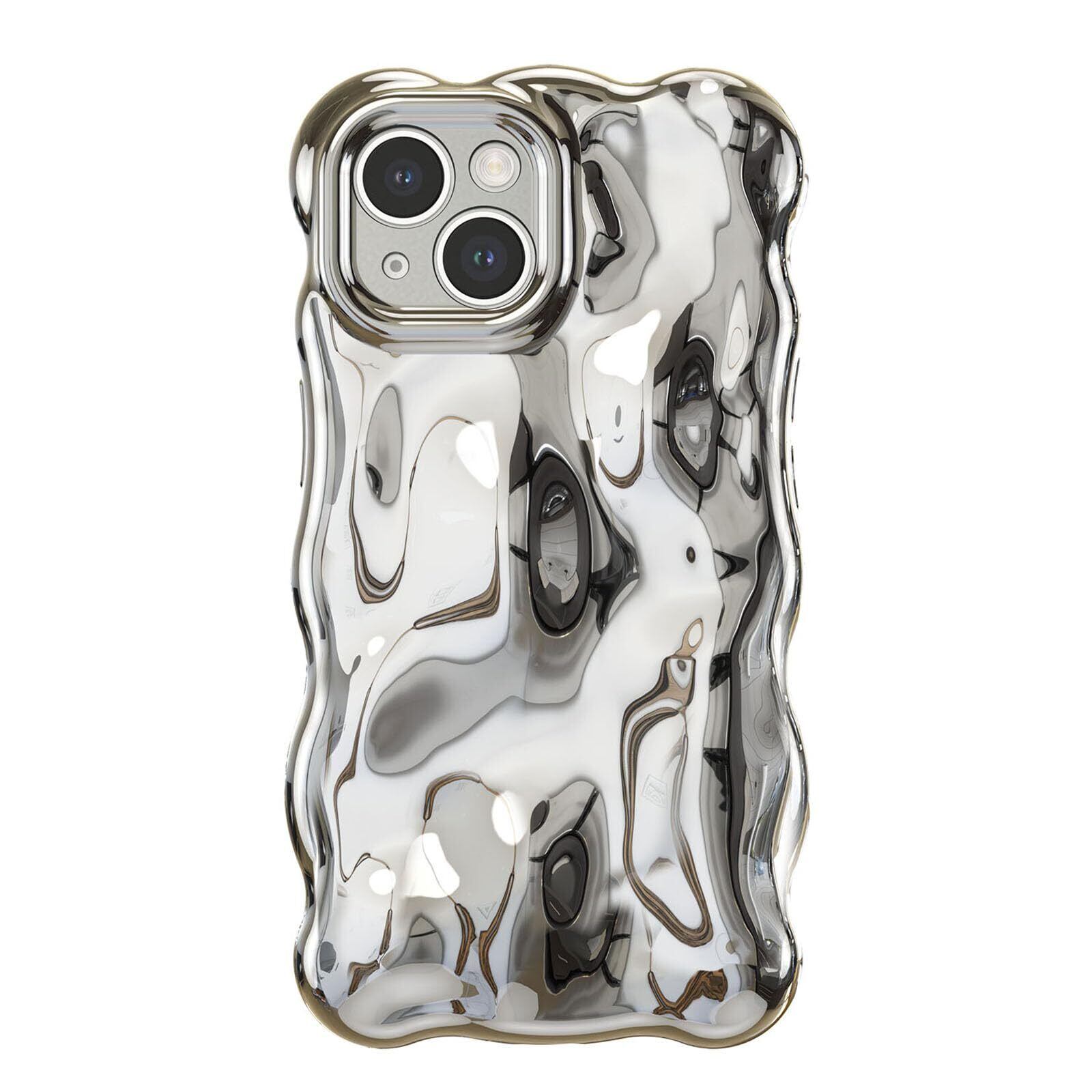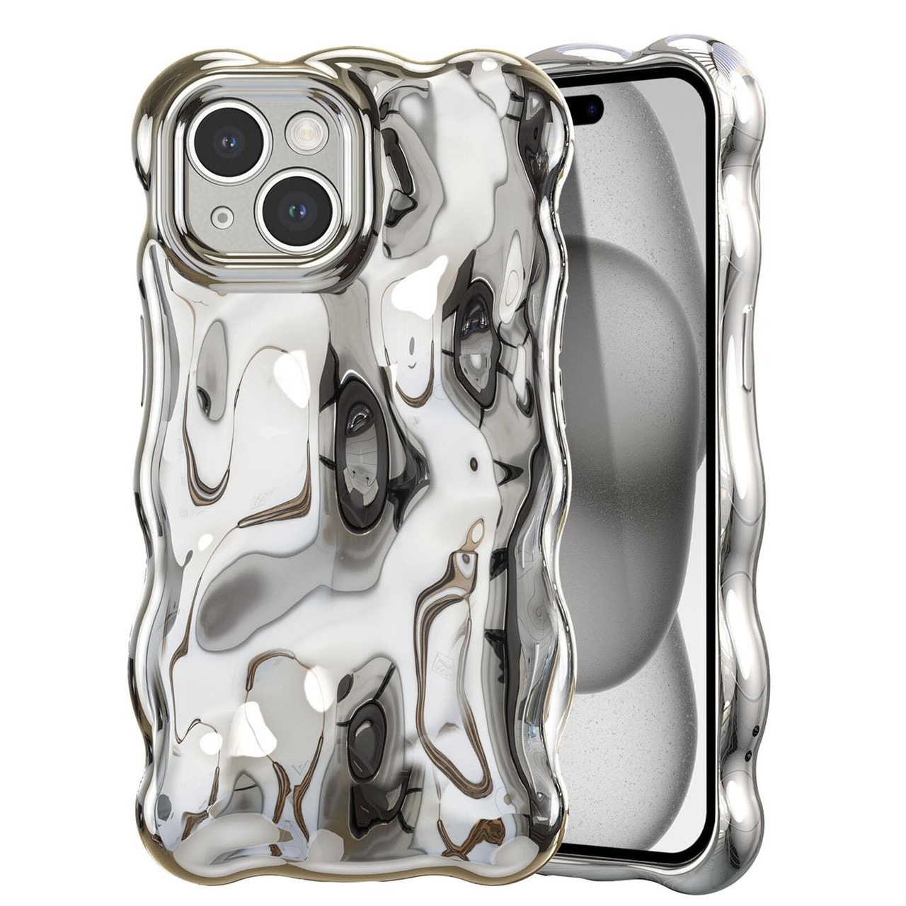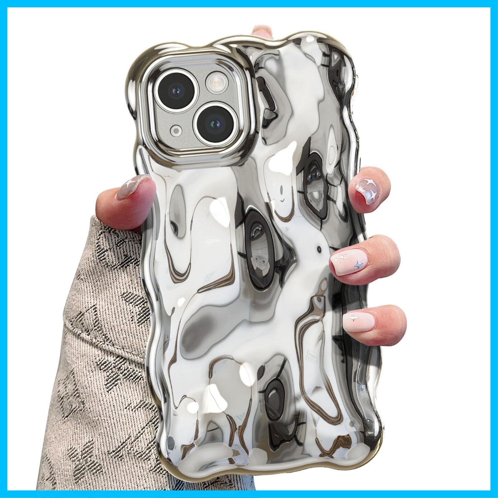 UEEBAI 対応 iPhone 15 用の ケース ウェーブデザイン スマホケース 可愛い 人気 おしゃれ ケース 薄型 軽量 グリッター 光沢カバー 耐衝撃 波型 バンパー スマホケース - シルバー