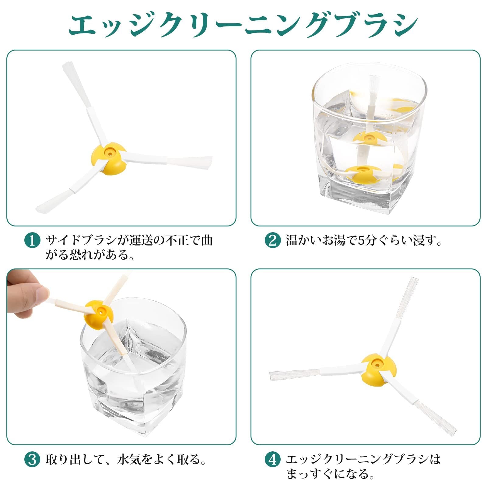 【サイドブラシ】壁や隅などのお掃除が困難な場所には、サイドブラシが綺麗に掃除できます。小さなお子様がいるご家庭でも、安心してお使い頂けます。 表面にゴミが付着して、斑点ができたり吸引力が弱まったときに交換してください。