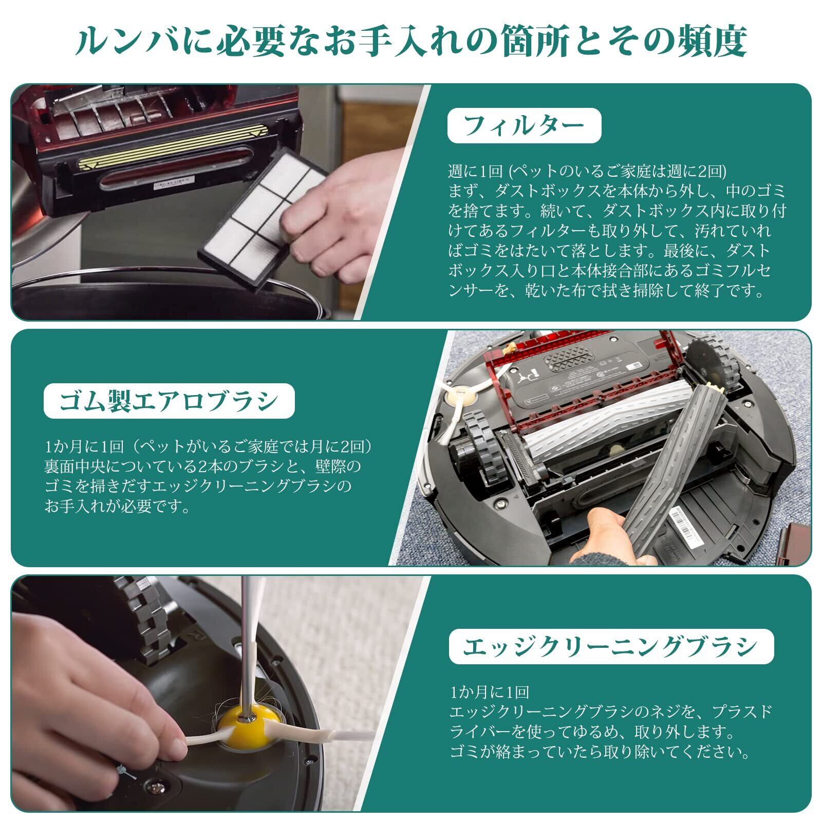 【メンテナンス】アイロボット部品は簡単に取り付け、耐久性があります。ルンバの清潔能力が弱くなった場合、掃除機の高性能を保つためにブラシとフィルターを交換してください。掃除機の使用状況によって異なります。