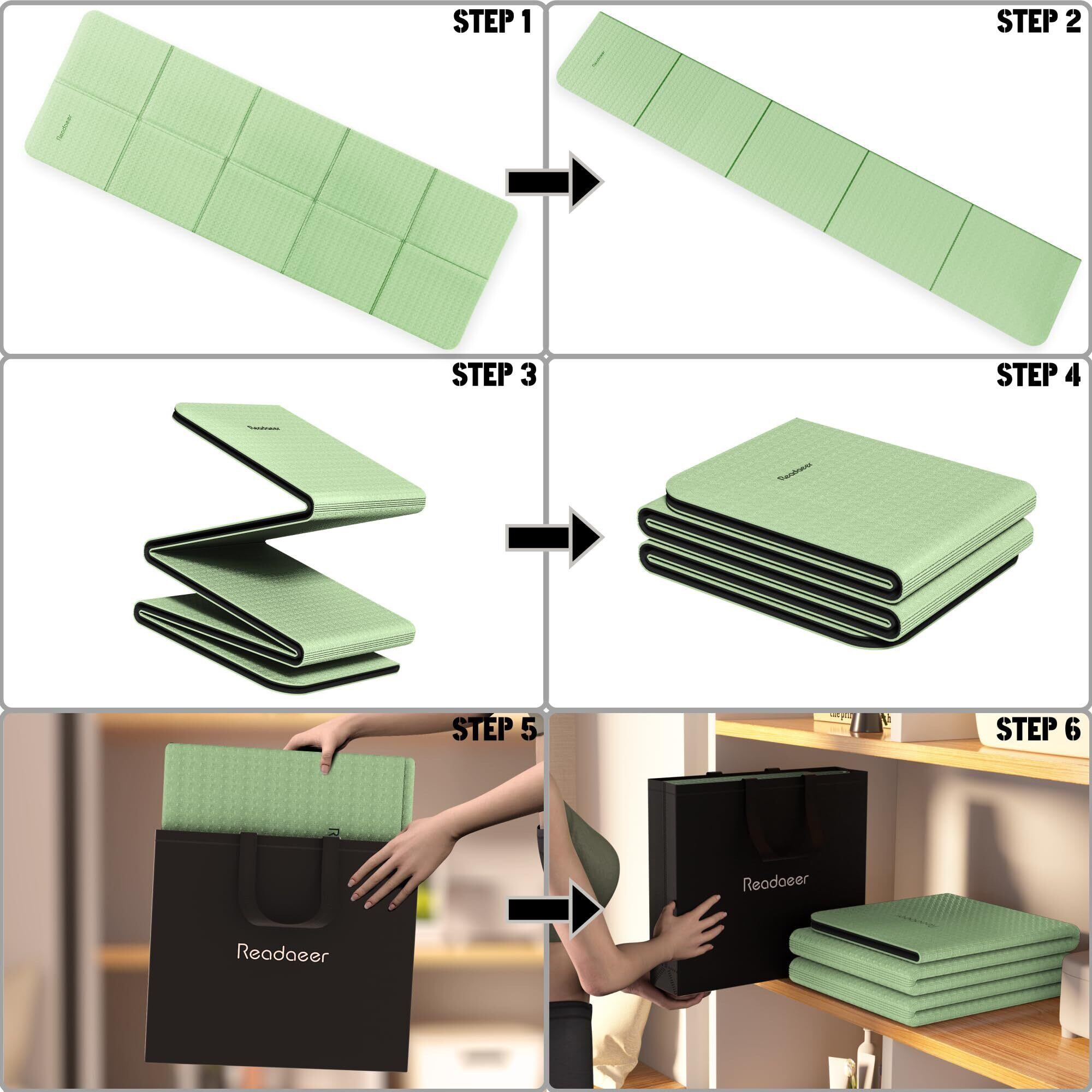 Readaeer ヨガマット トレーニングマット 折り畳み式 183cm×61cm 厚め 6mm TPE素材 無臭 防音 収納バッグ付き 軽量 持ち運び・収納便利 両面カラー ストレッチマット エクササイズマット フィットネスマット ピラティスマット (グリーン&ブラック)