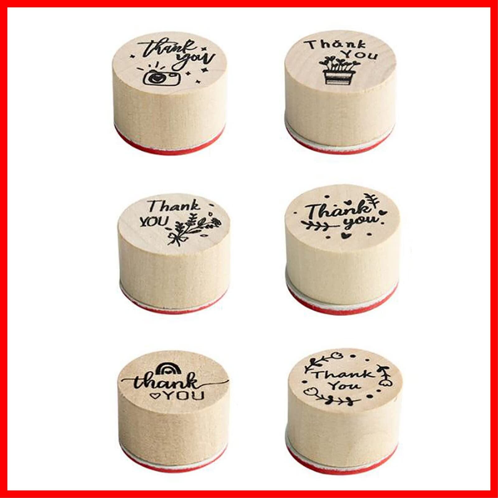 YFFSFDC スタンプ 6個セット 可愛い 木製 Thank You スタンプ DIY デコレーション グリーティングカード 手紙用 直径3cm 高さ2.1cm