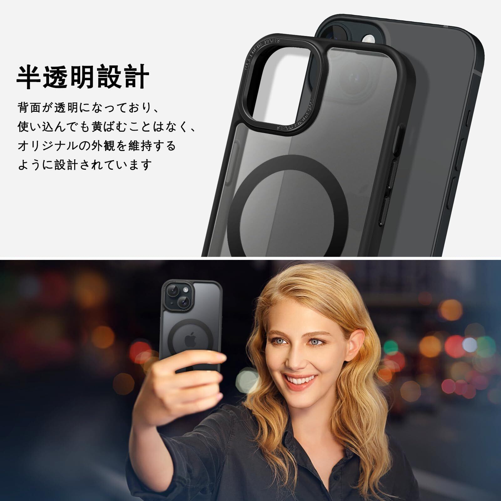 BENTOBEN iPhone 15 Plus ケース MagSafe対応 ワイヤレス充電 半透明 マット感 指紋防止 メタル レンズ保護 耐衝撃 アイフォン15プラス ケース カバー ブラック