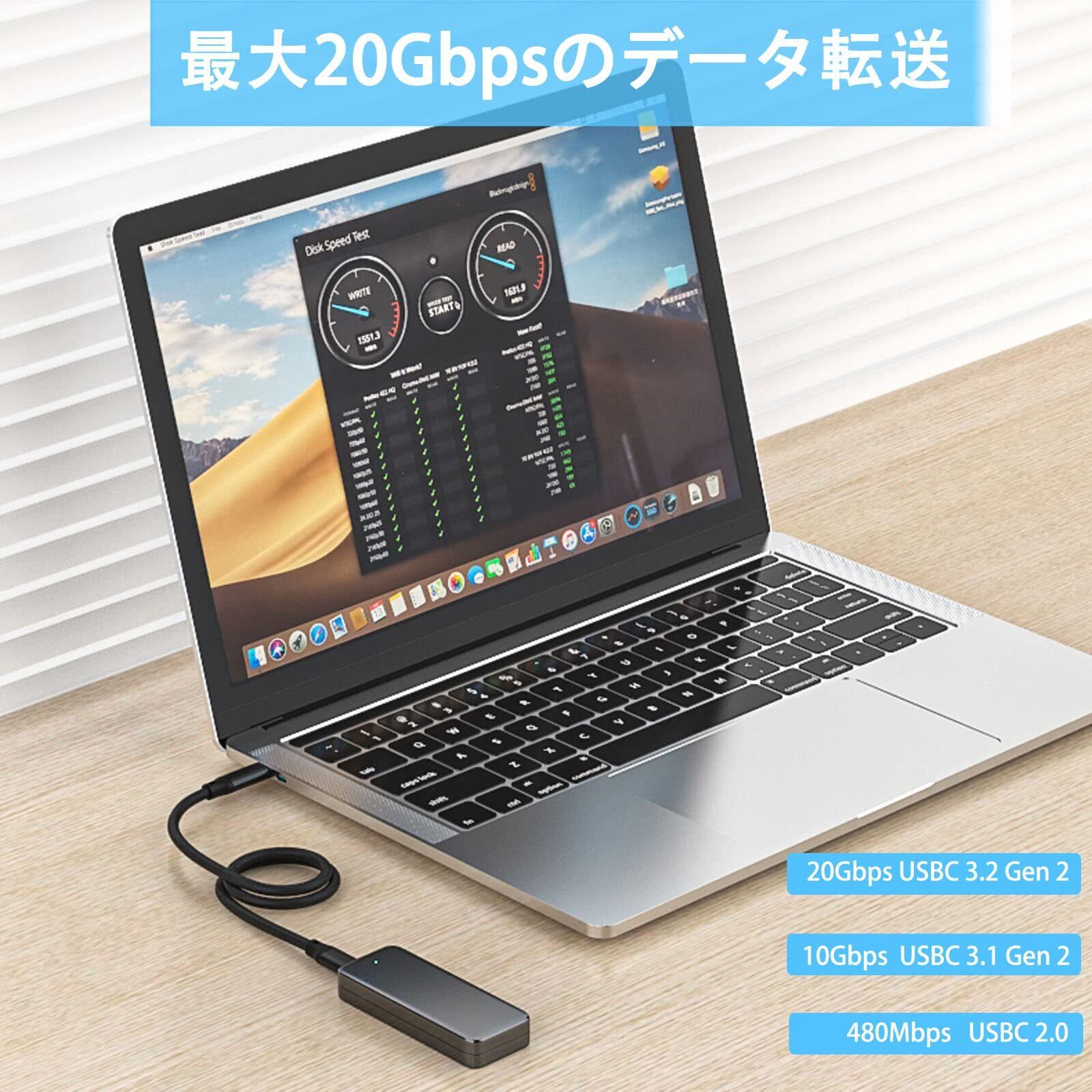 データ転送速度は最大20Gbps!大容量のデータでも瞬時に転送が可能なので、パソコンや周辺機器とのやり取りもストレスフリーです。急ぎの作業やデータの管理において、力強いサポートを提供します。
