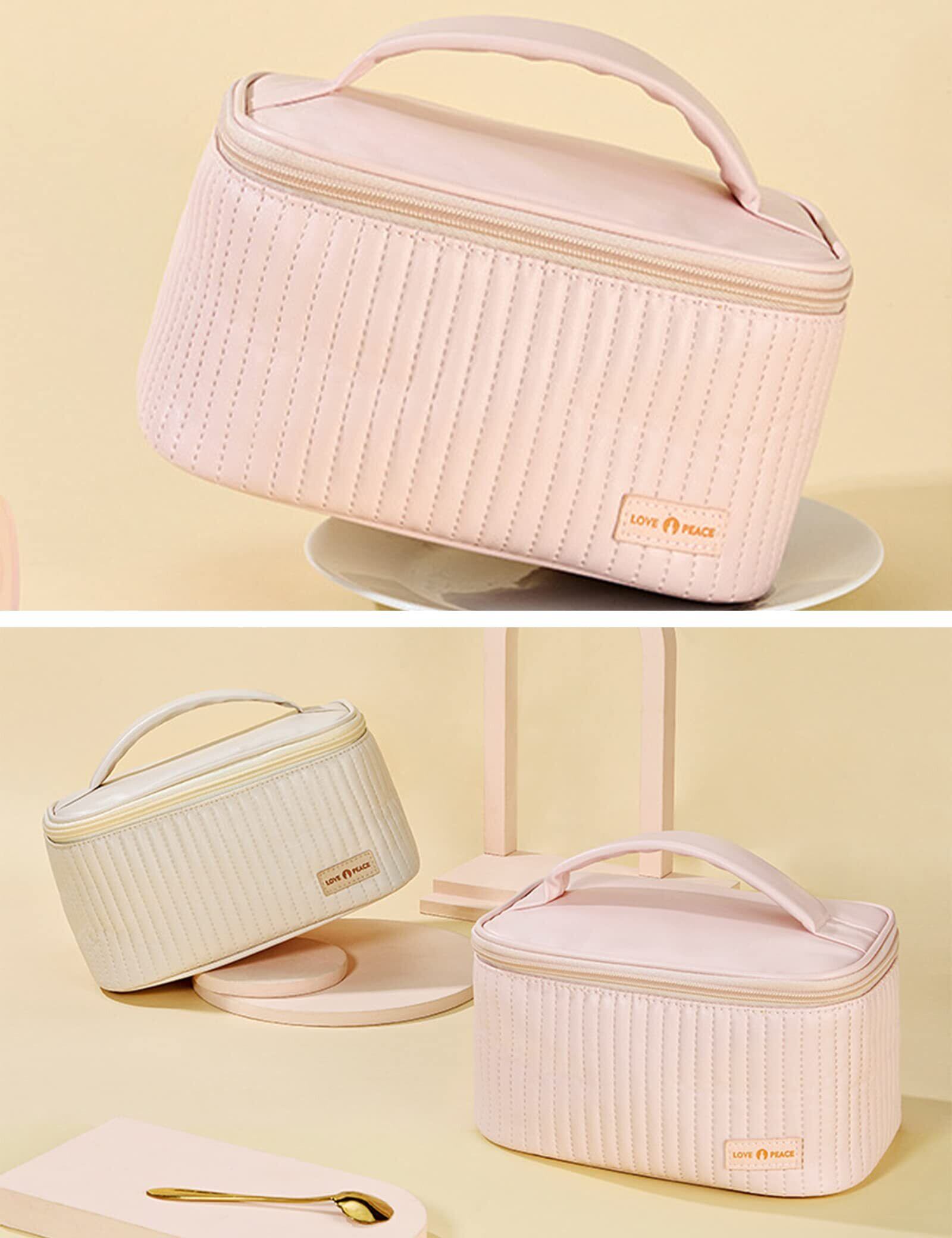 このメイクポーチは、たっぷりの化粧品を収納できる大容量設計。仕切りやポケットが豊富で、小物も整理しやすく、必要なアイテムをすぐに取り出せます。お仕事やレジャーシーンに欠かせないアイテムです。