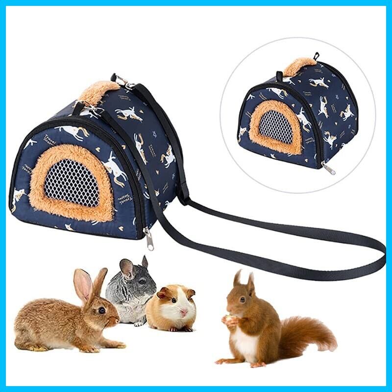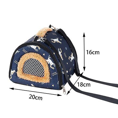 YOASONEK ペット キャリーバッグ 小動物 ハムスター ケージ キャリー ケース 小鳥 外出 ショルダーバッグ おでかけ 四季用 軽量 通気 ペットハウス リス 避難 防災 通院 病院 移動 持ち運び 旅行 携帯包 栗鼠 うさぎ 小動物用お出かけ用品 (ネイビー)