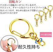 このキーホルダー金具には回転カンが付いており、鍵やアクセサリーを簡単に取り外し・取り付けできるので、使い勝手抜群です。手軽にお好みのカスタマイズが楽しめるのも大きなポイントです。