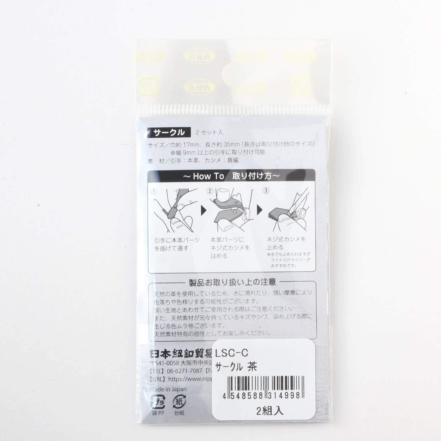日本紐釦貿易(Nippon Chuko) NBK 本革 ファスナー引き手パーツ サークル型 ネジ式カシメ付き 約17mm×35mm 茶 LSC-C