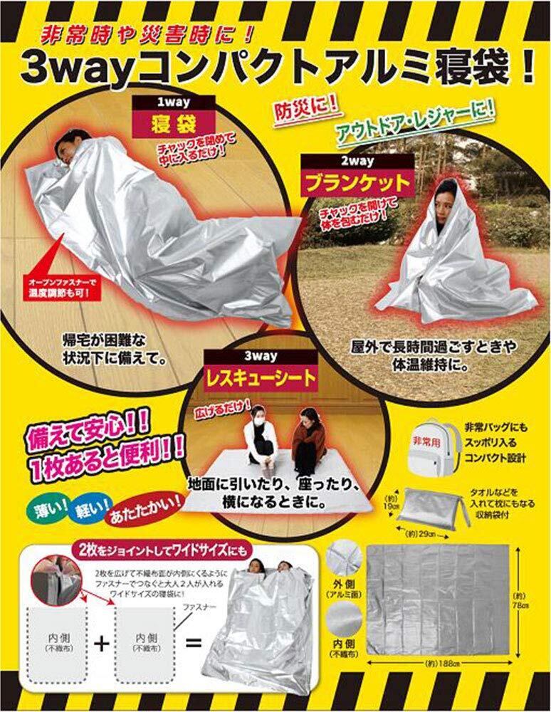 コジット 防災 寝袋 3wayコンパクトアルミ寝袋 シルバー サイズ:幅187×奥行158cm (寝袋時:78×187cm) 90193