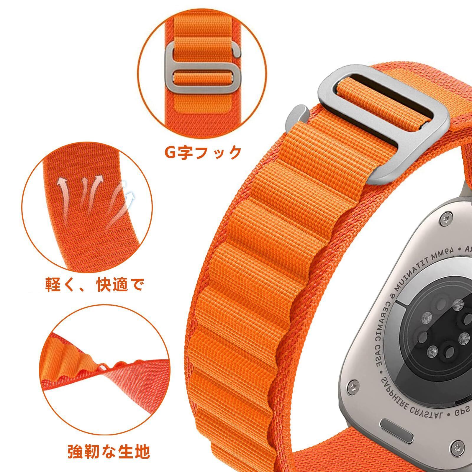 ⌚【長さ自由に調整】このApple watch Ultra バンドは耐食性のあるチタニウムで作られたG字フックを簡単に通してしっかり装着できます。Apple Watchをしっかり装着でき、サイズの調節も簡単にできます。