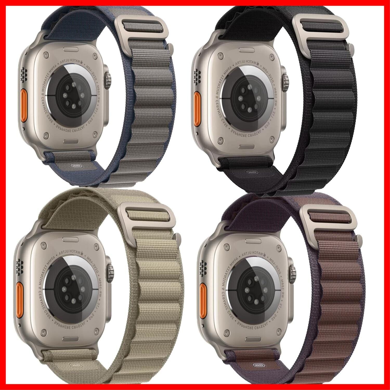 4本セット アルパインループ Apple Watch バンド G字フック 強靭 通気性 伸縮性 柔らかい アップルウォッチ バンド 49mm 46mm 45mm 44mm 42mm 41mm 40mm 38mm ナイロンループ Ultra 3/ Ultra 2/Ultra SE 3/SE 2/SE 11 10 9 8 7 6 5 4 3 2 1 に対応