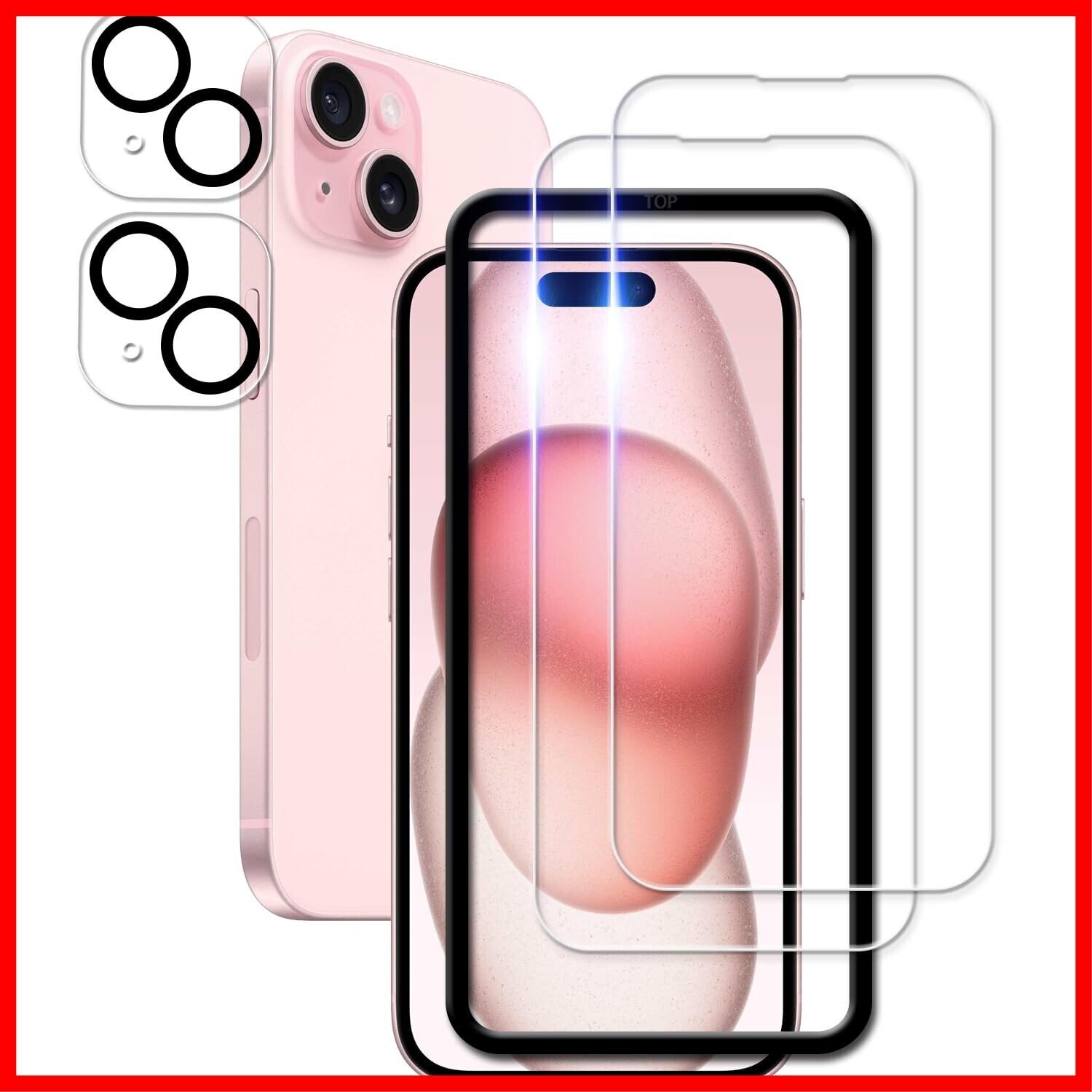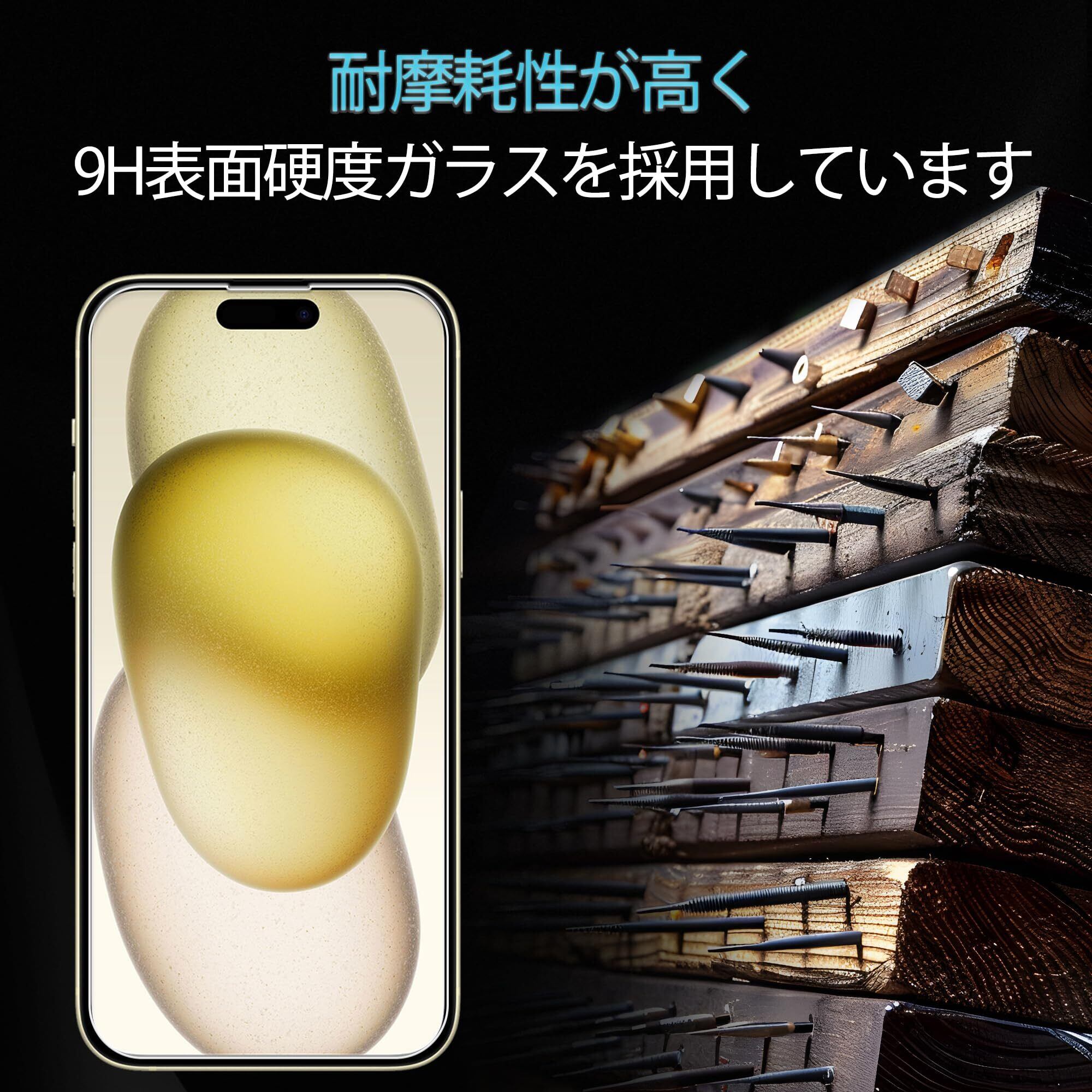 KPNS 日本素材製 強化ガラス iPhone15 用 ガラスフィルム アイフォン15 カメラフィルム カバー いphone15 保護フィルム【2+2枚セット】ガイド枠付き