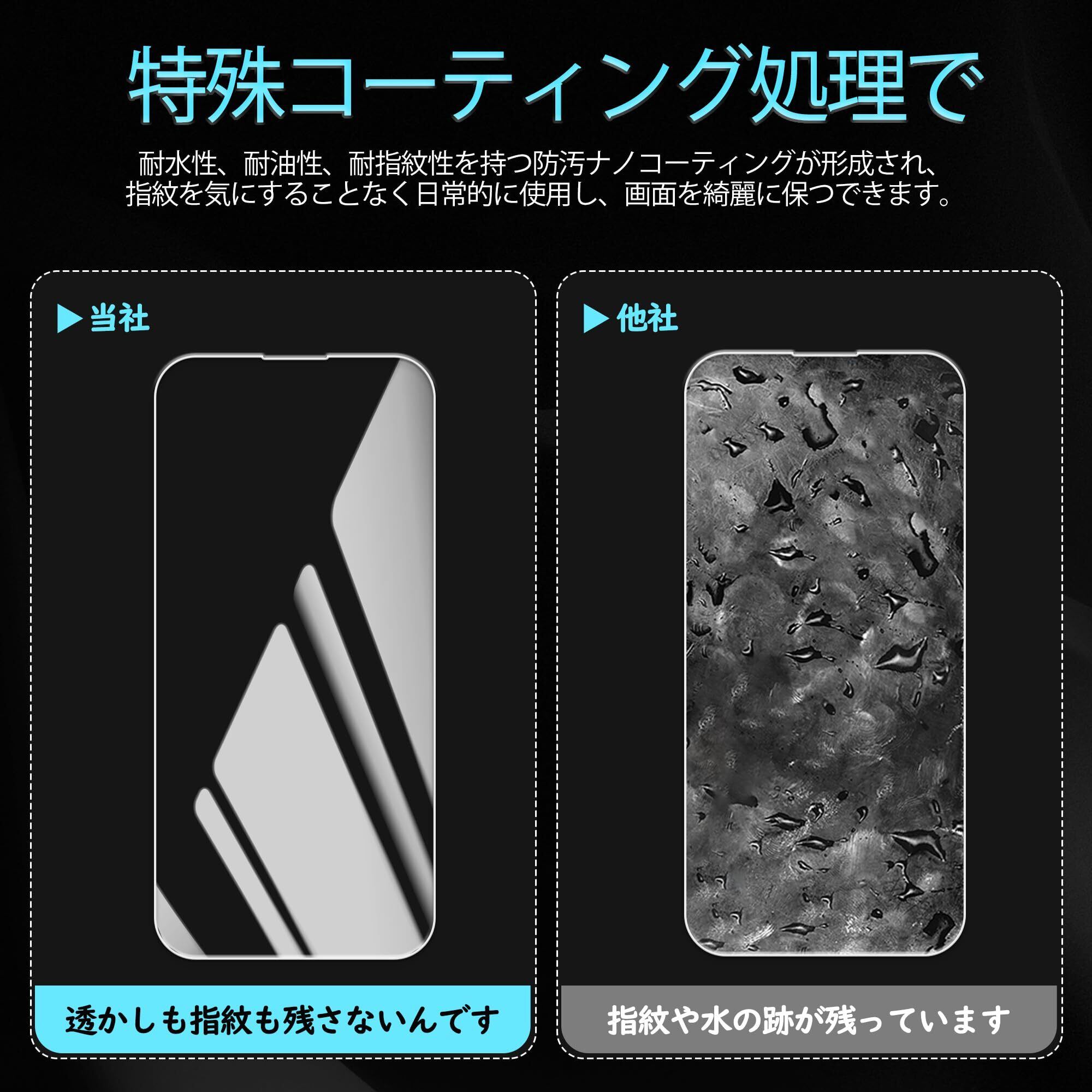 【指紋防止、高感度タッチ】iPhone 15 ガラスフィルムには撥油コーティングが施されており、指紋や汚れなどに強くなめらかな操作感を実現、付着した汚れなどは簡単に拭きとれます。こちらは高耐久撥油コーティングが施され、つるつるな滑り感を実現!ゲームしても渋くなし!