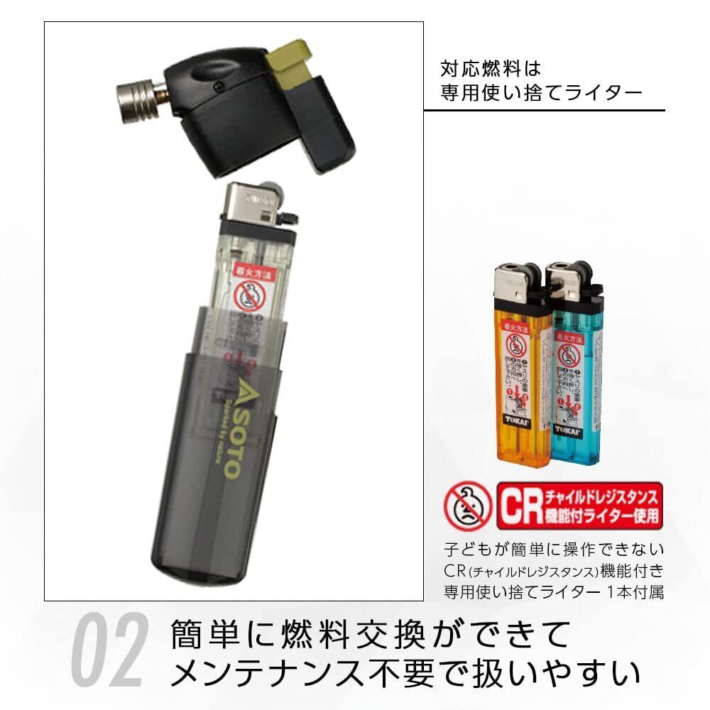 ソト(SOTO) 日本製 小型 強力 耐風 バーナー 軽量 使い捨てライター 装着式 軽量 コンパクト 普段使い アウトドア キャンプ ポケトーチ PT-14 SBCR スケルトンブラック [並行輸入品]