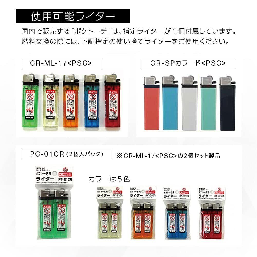 使用燃料:市販の使い捨てライター(使用可能ライター/CR-ML-17[PSC]・CR-SPカラード[PSC])