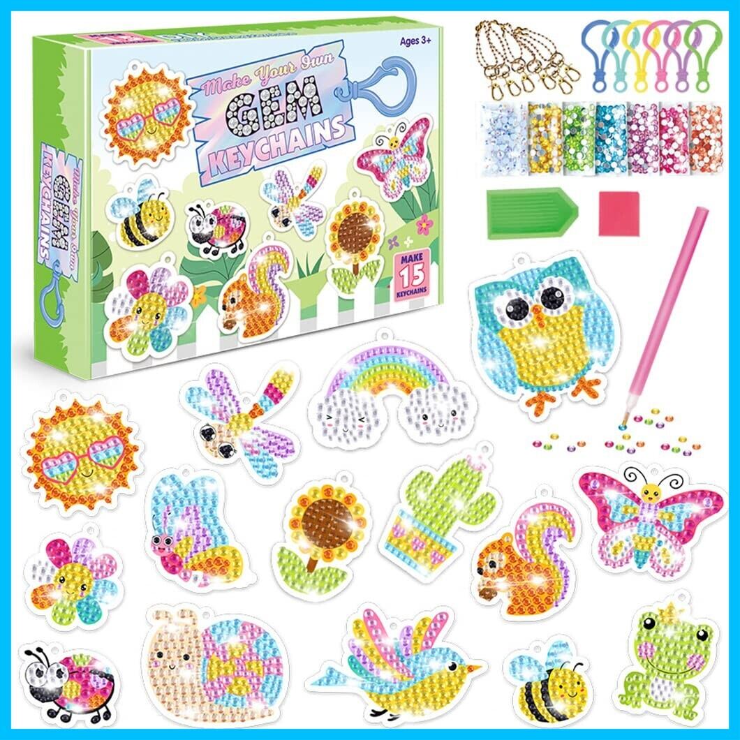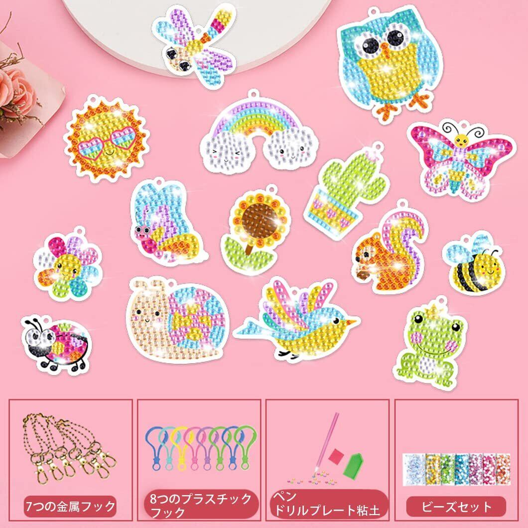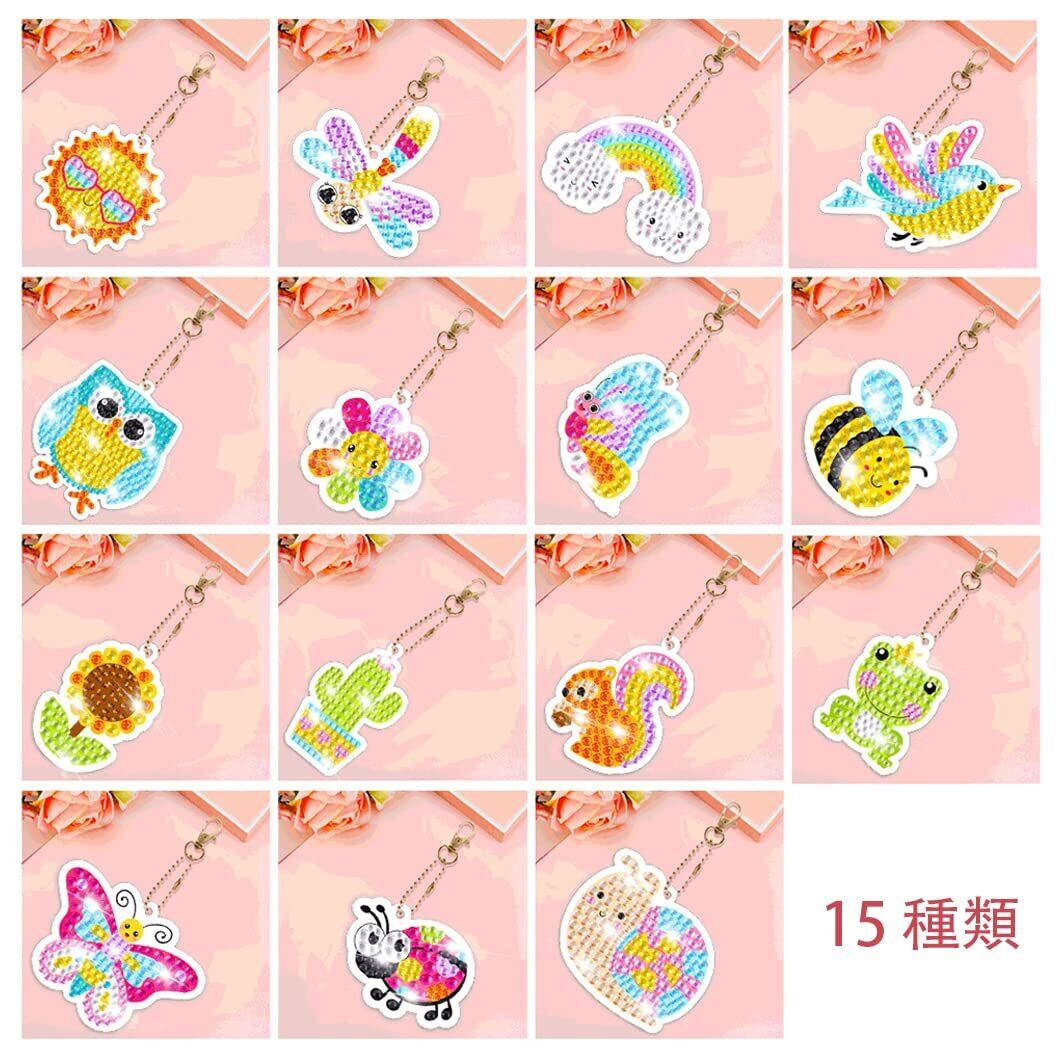 Rolin Roly ダイヤモンド 15種類 キーホルダー チャーム 5Dダイヤモンド絵画 ビーズアート 手作りDIY バッグ飾り キーリング ダイヤモンド塗装 ダイヤモンドアート 初心者 DIY手作り 手工芸品 誕生日 プレゼント(15種類)