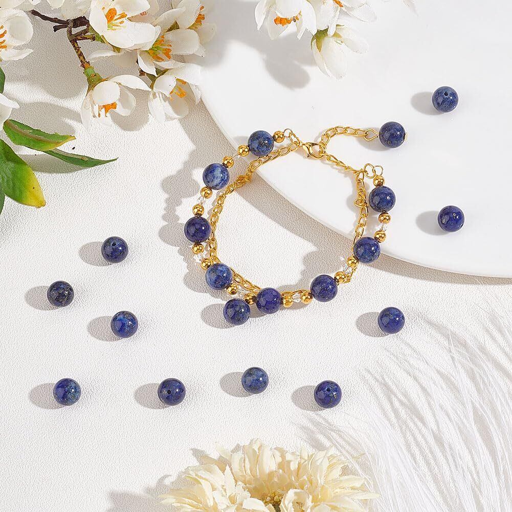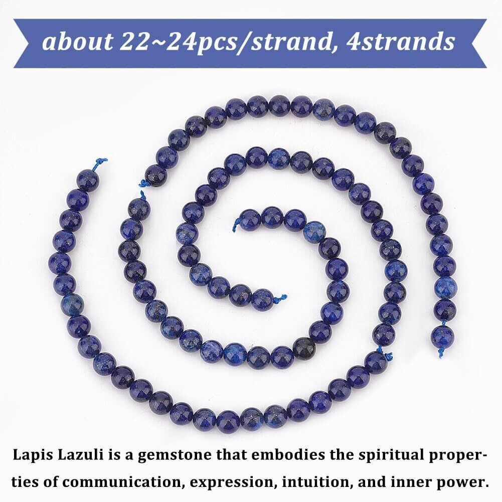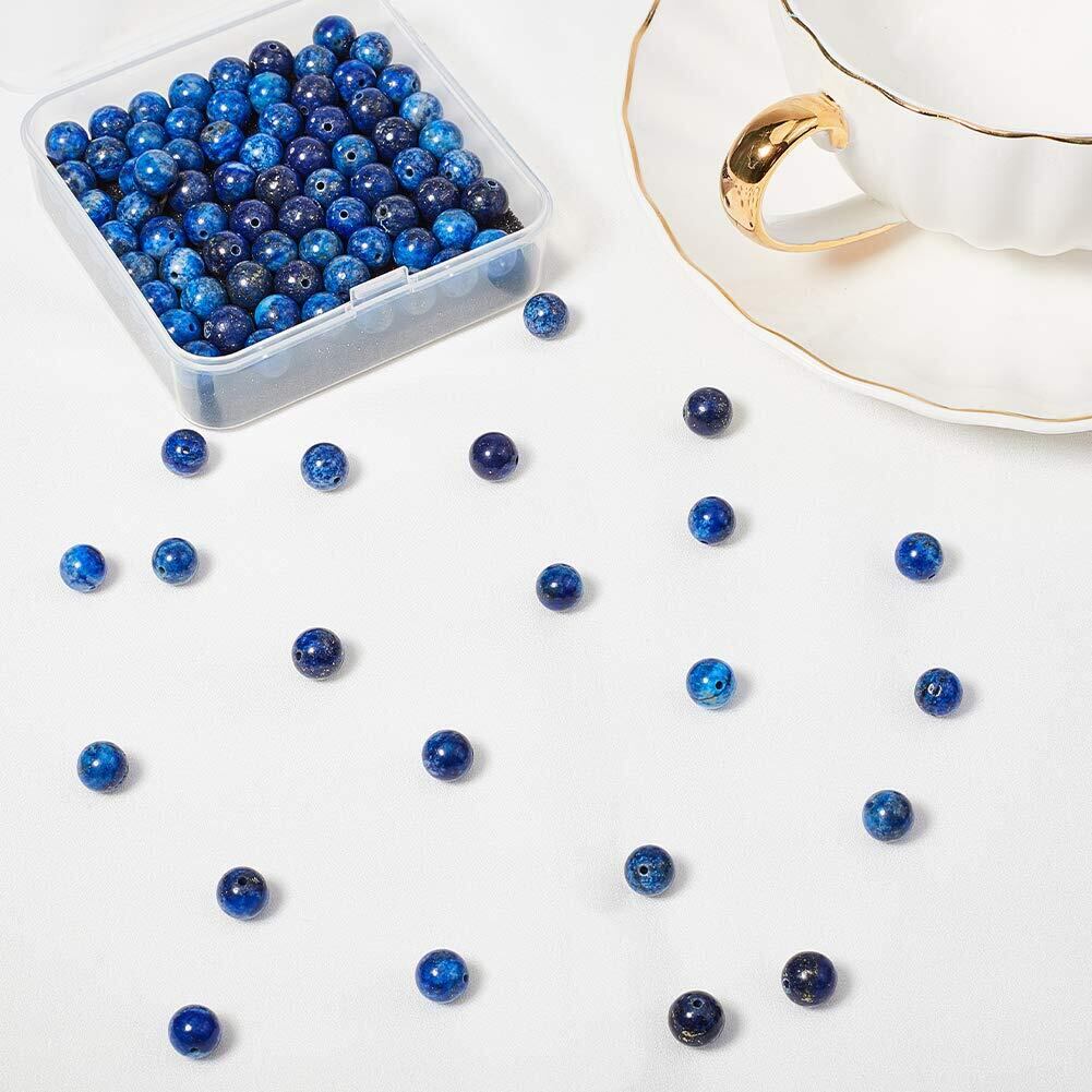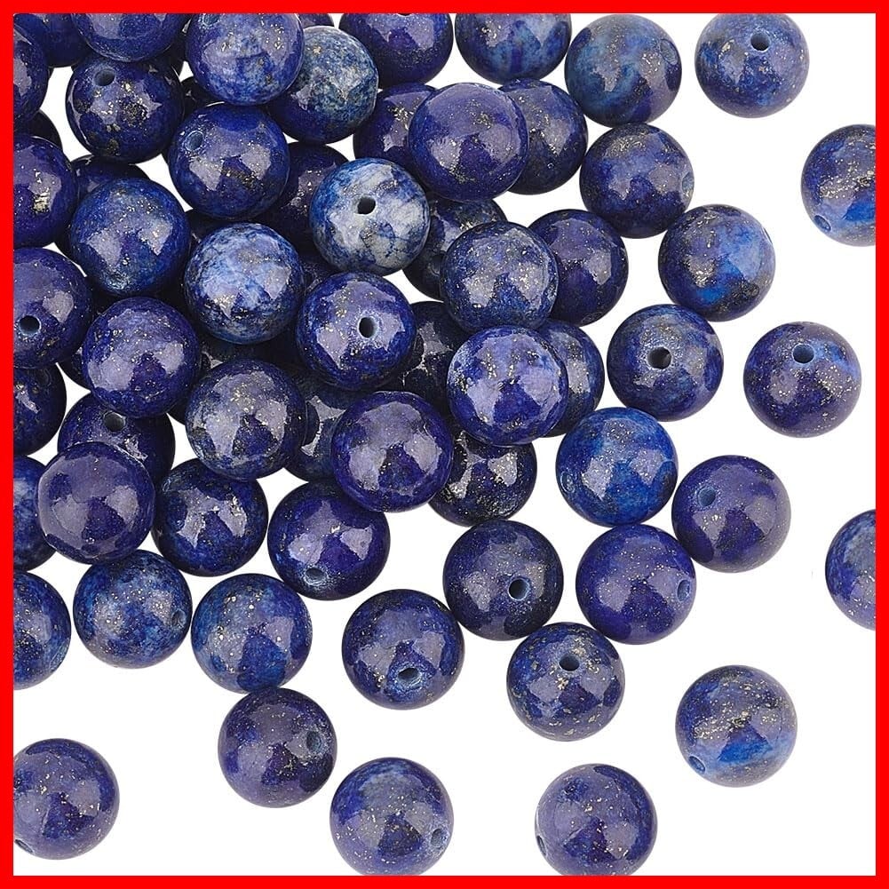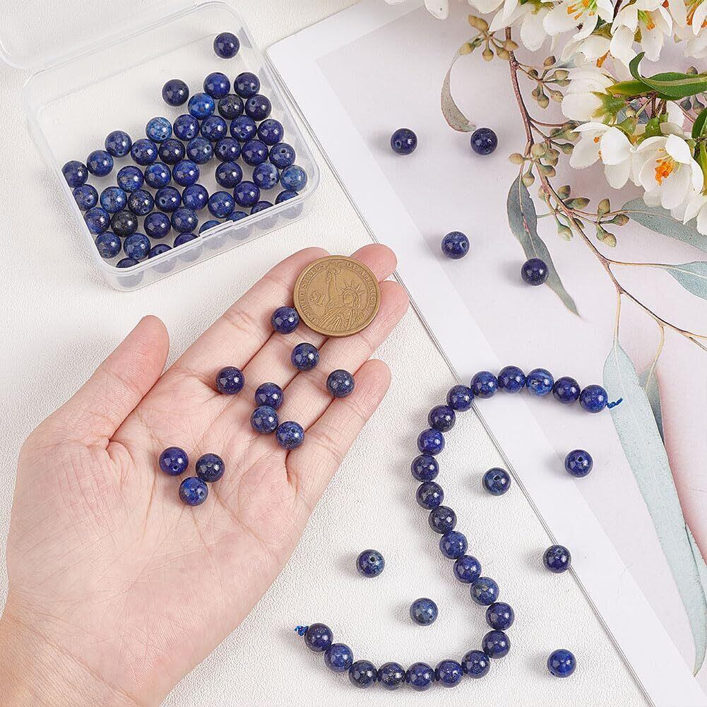 OLYCRAFT 約88~96個 ラピスラズリビーズ 8mm 色染め 天然石ビーズ 穴1mm ビーズ ブルー 丸い ルーズジェムストーンビーズ 天然ラピスラズリビーズ エネルギーストーン ブレスレット作り ジュエリー作り DIY
