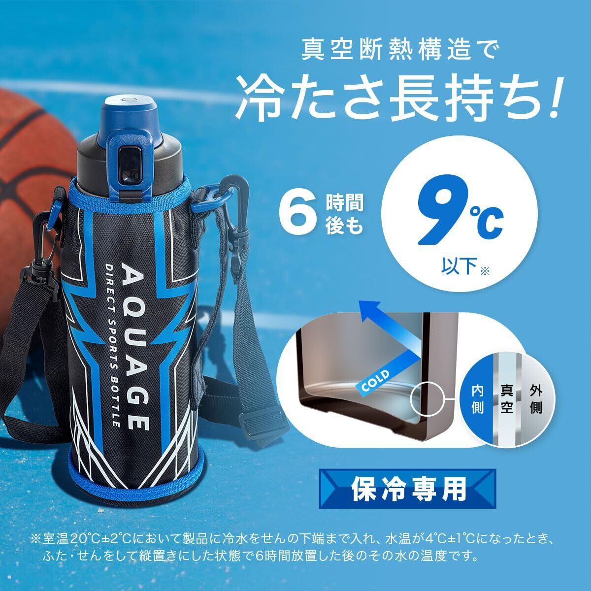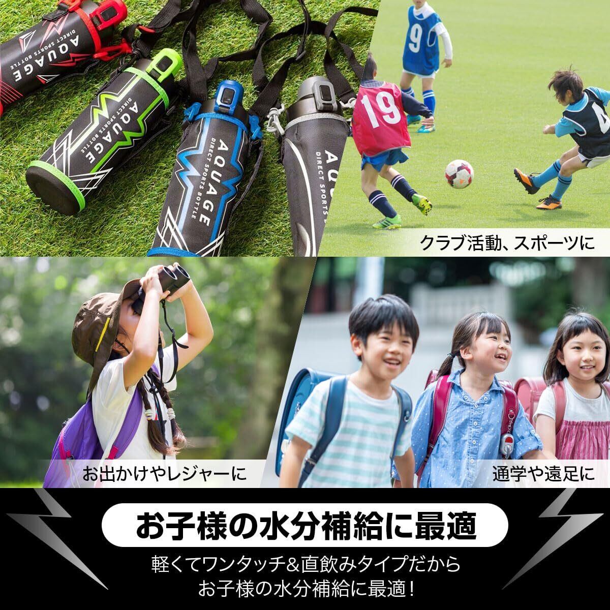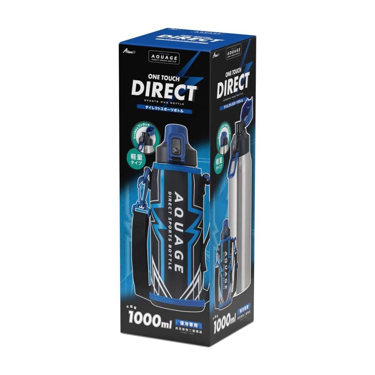 アトラス 水筒 1リットル 子供 小学生 直飲み カバー付き 紐付き 直飲み 子ども 保冷専用 ステンレス 真空断熱 軽量 ワンタッチ 洗いやすい AQUAGE アクアージュ ADBT-1001
