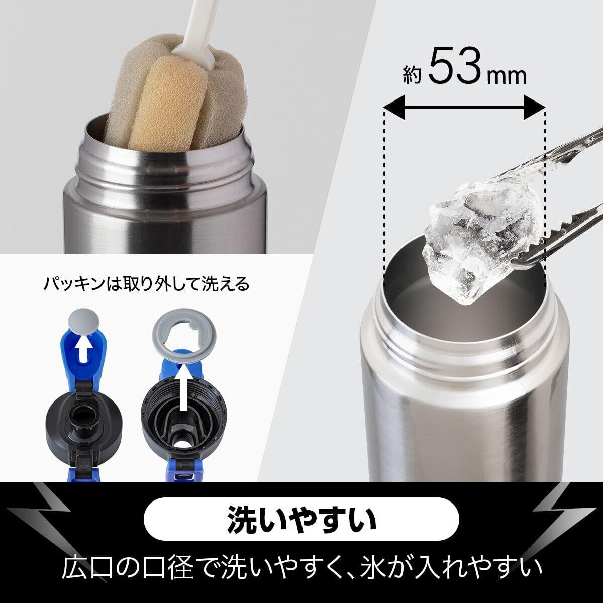 真空二重構造で熱が伝わりにくく、冷たさを保ちます。フタをあけてそのまま飲める直飲みタイプ。保冷専用。