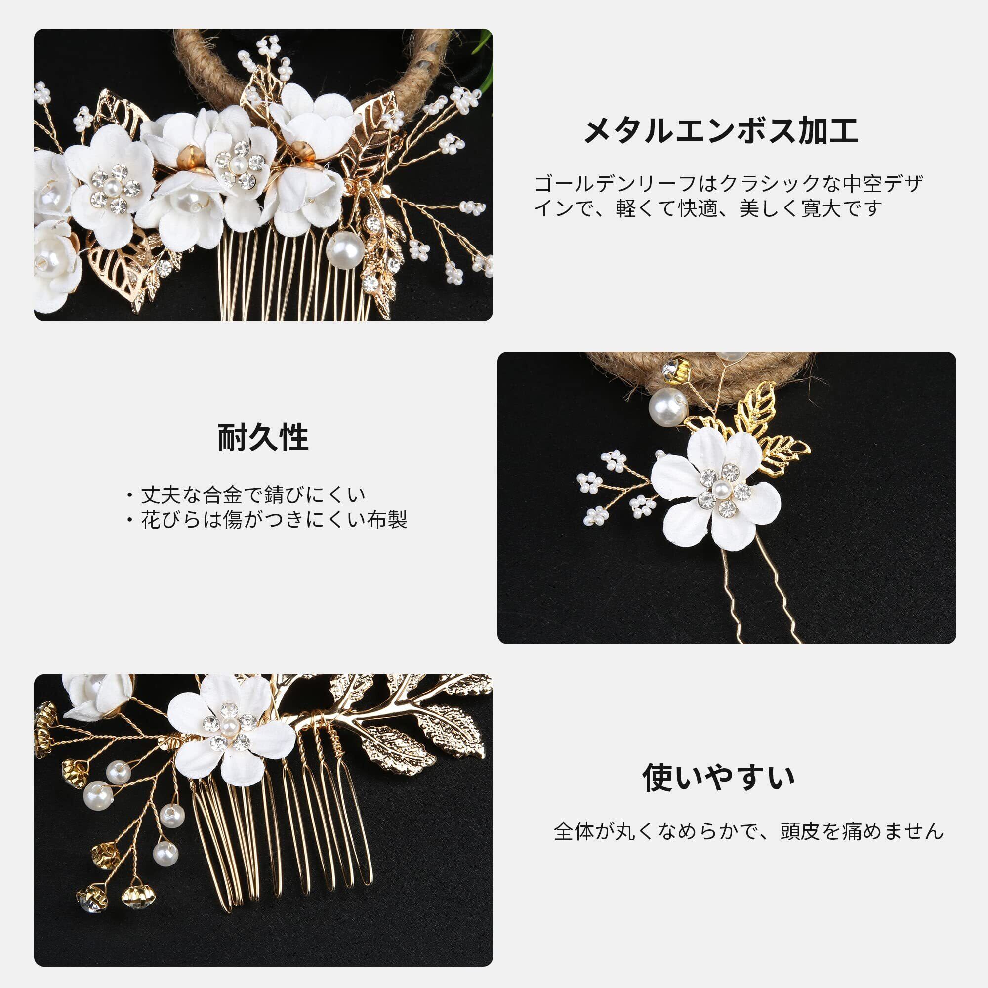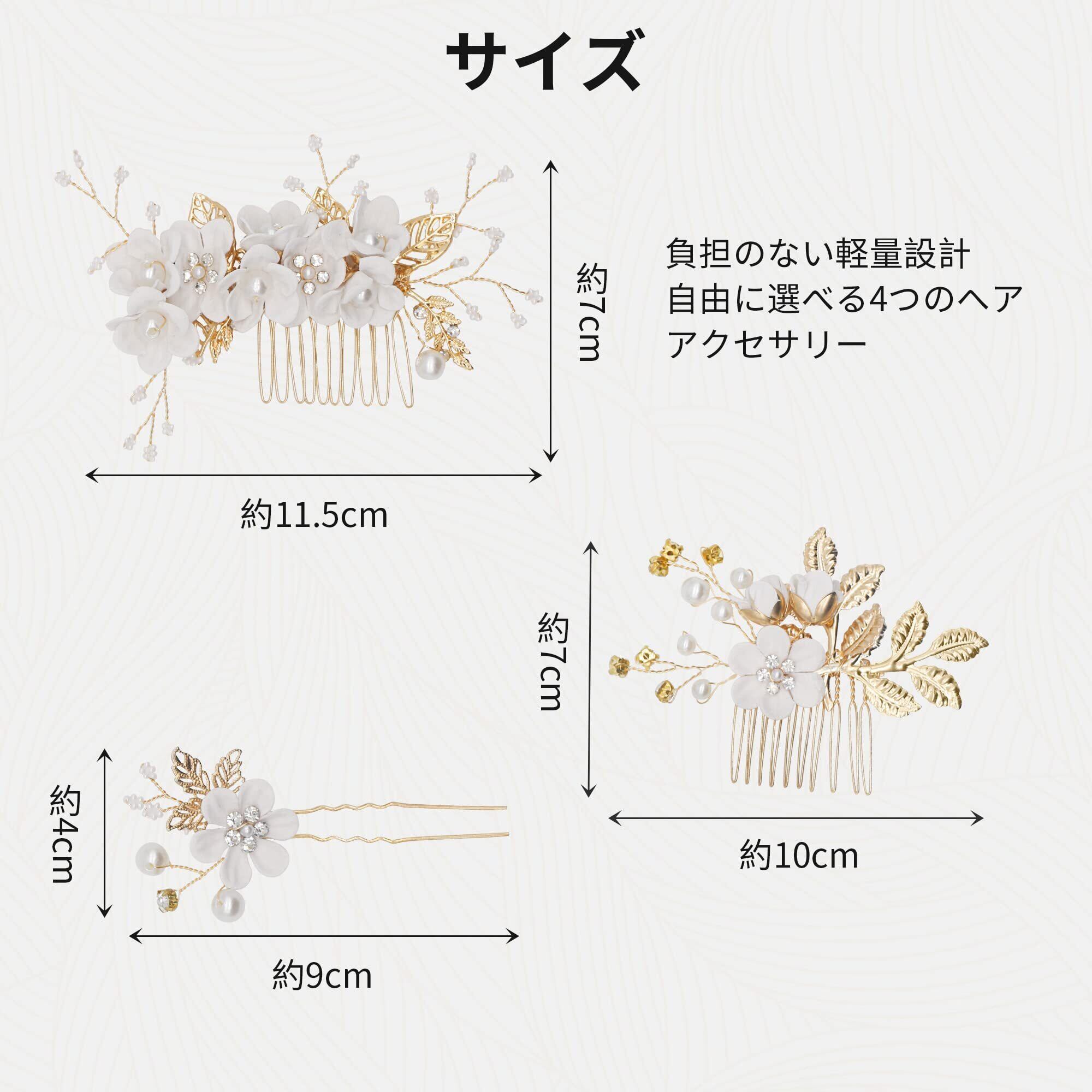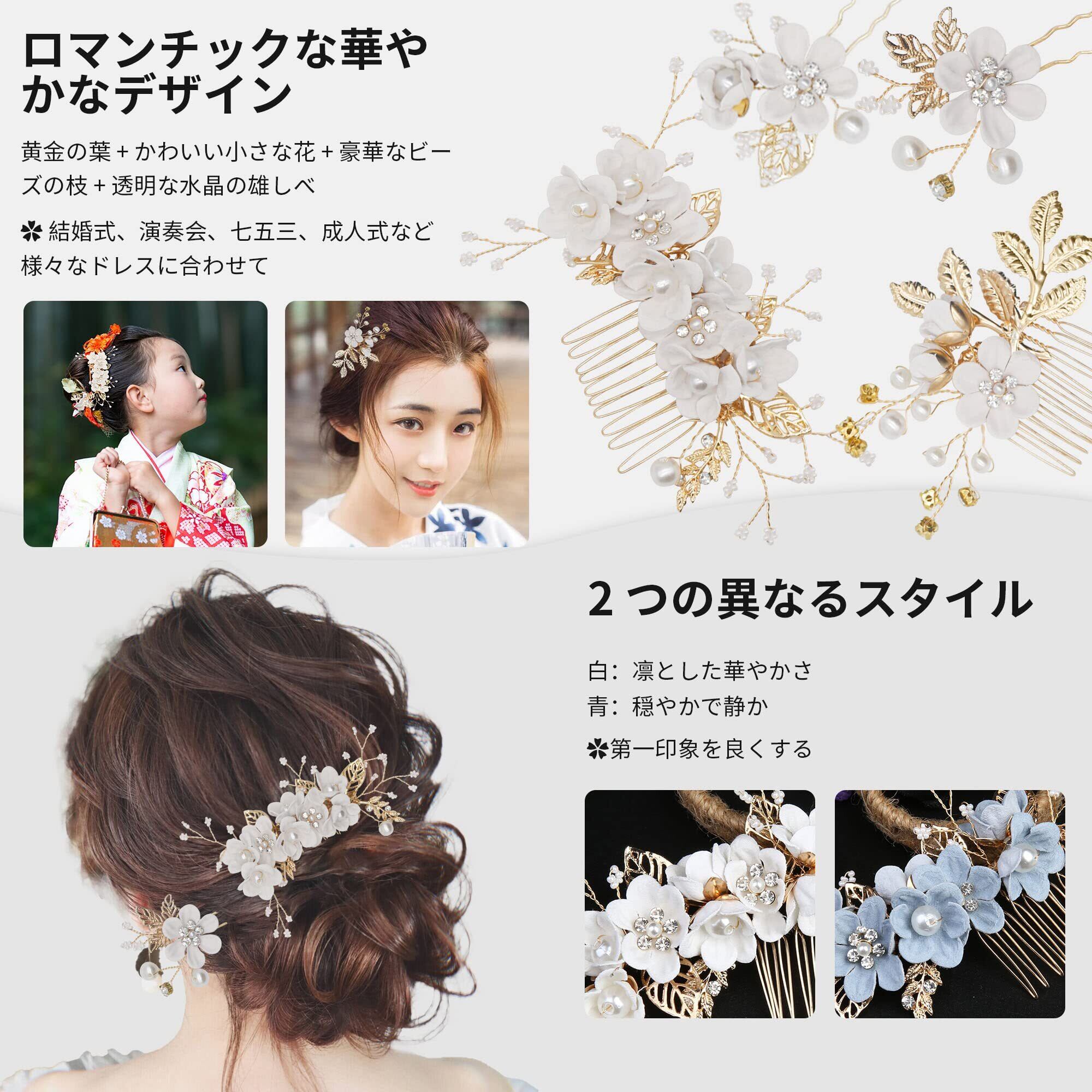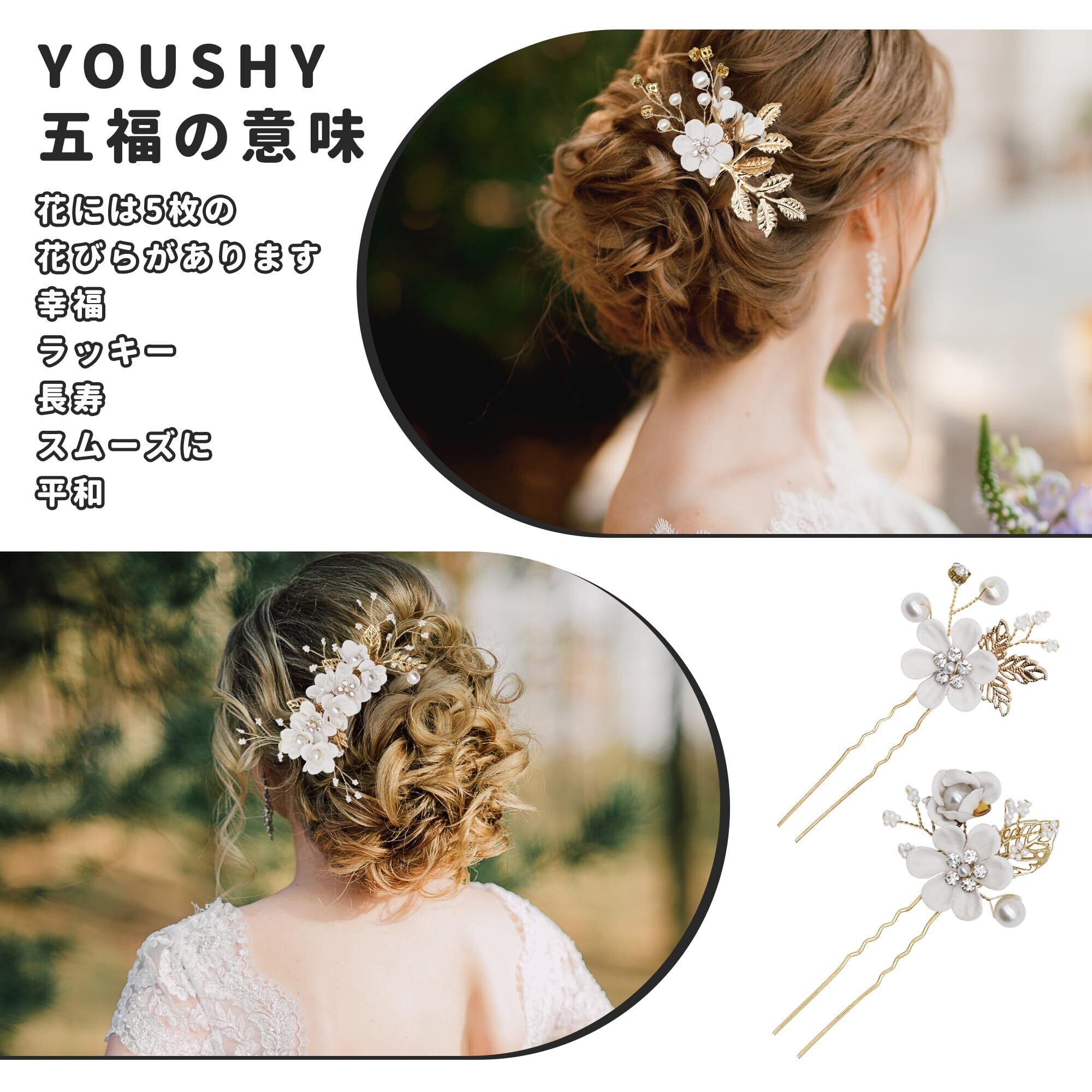 YOUSHY ヘアアクセサリー 結婚式 お呼ばれ 髪飾り 浴衣 着物 髪飾り 花 ヘッドドレス パール フラワー コーム Uピン ヘアピン かんざし ウェディングにも 成人式 七五三 披露宴 パーティー 入学式 和装 髪飾り(ホワイト)