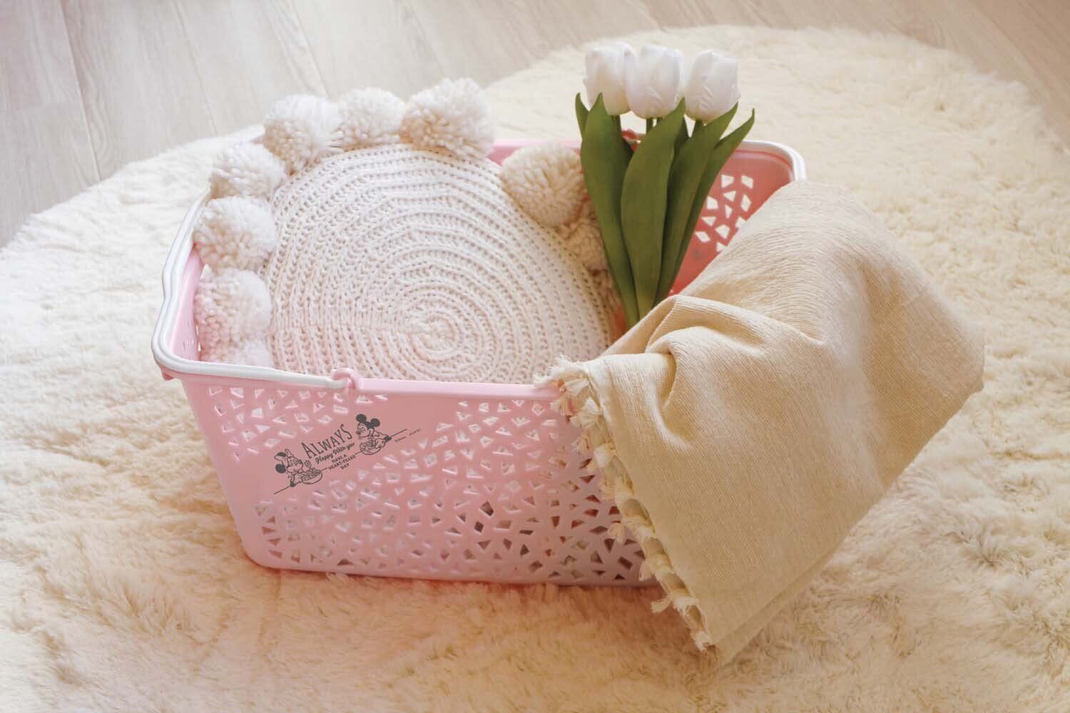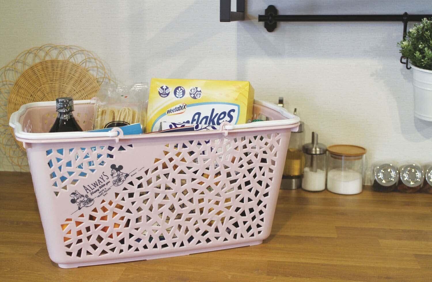 「錦化成 ラピス バスケット 11」は、ミッキーとミニーのデザインが施された愛らしいバスケットです。ピンクベージュの柔らかな色合いは、お部屋のインテリアともマッチし、さまざまなシーンで活躍します。サイズや形状も使いやすく、一家に一つは持っていたいアイテムです!