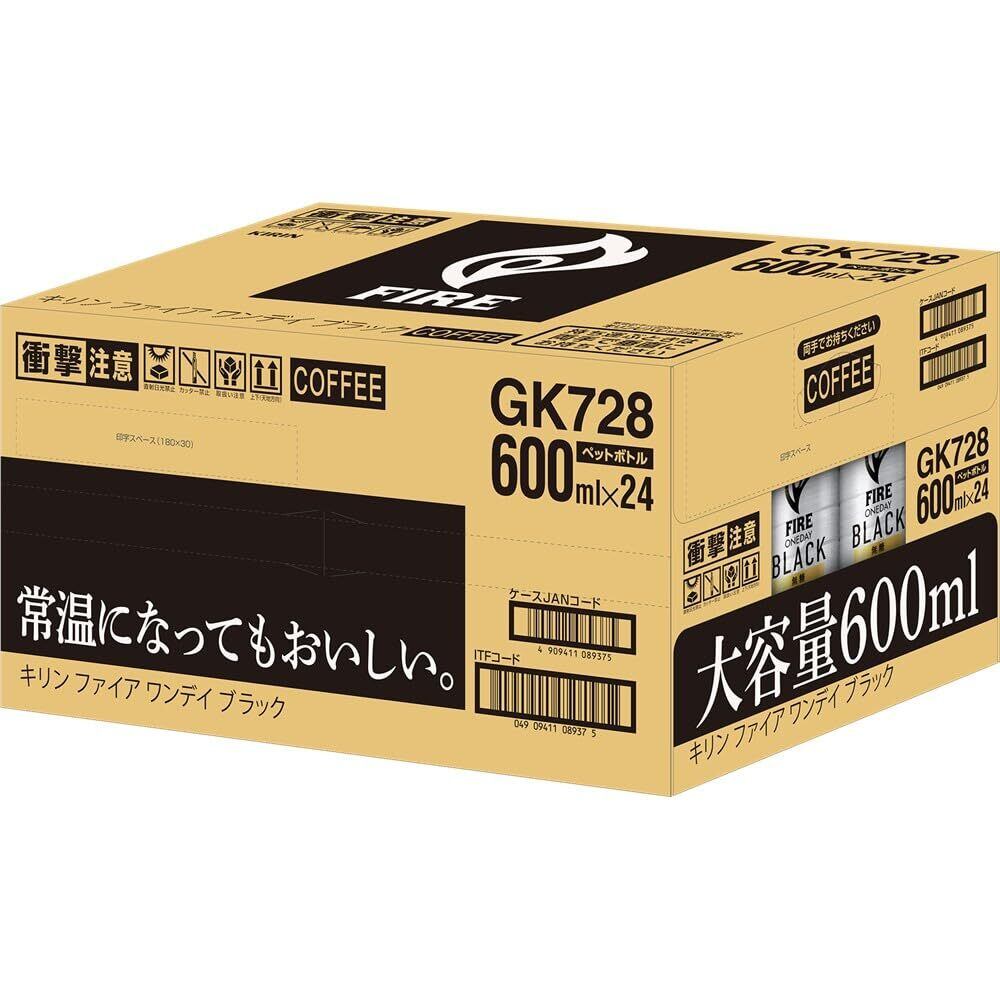 Fire(ファイア) キリン ワンデイ ブラック コーヒー 無糖 600ml 24本 ペットボトル