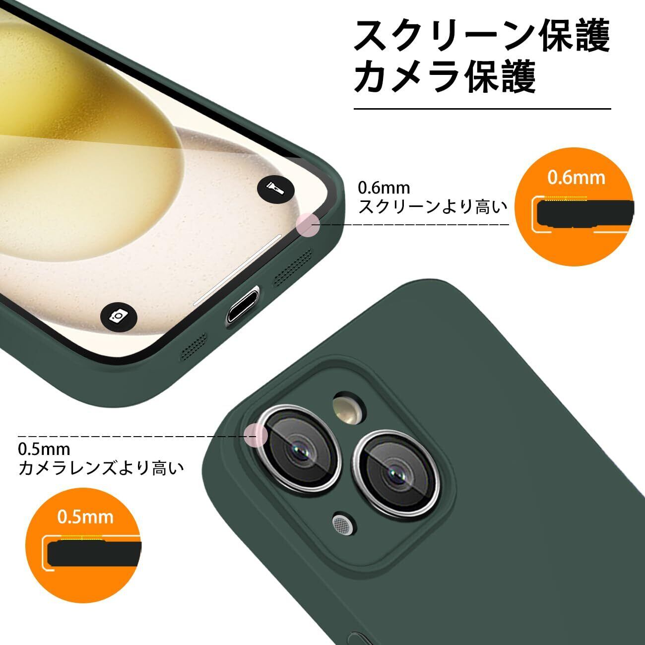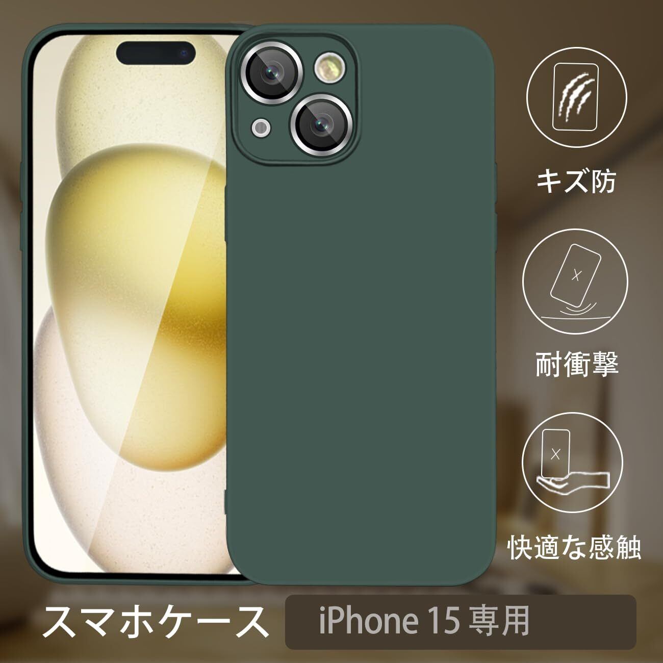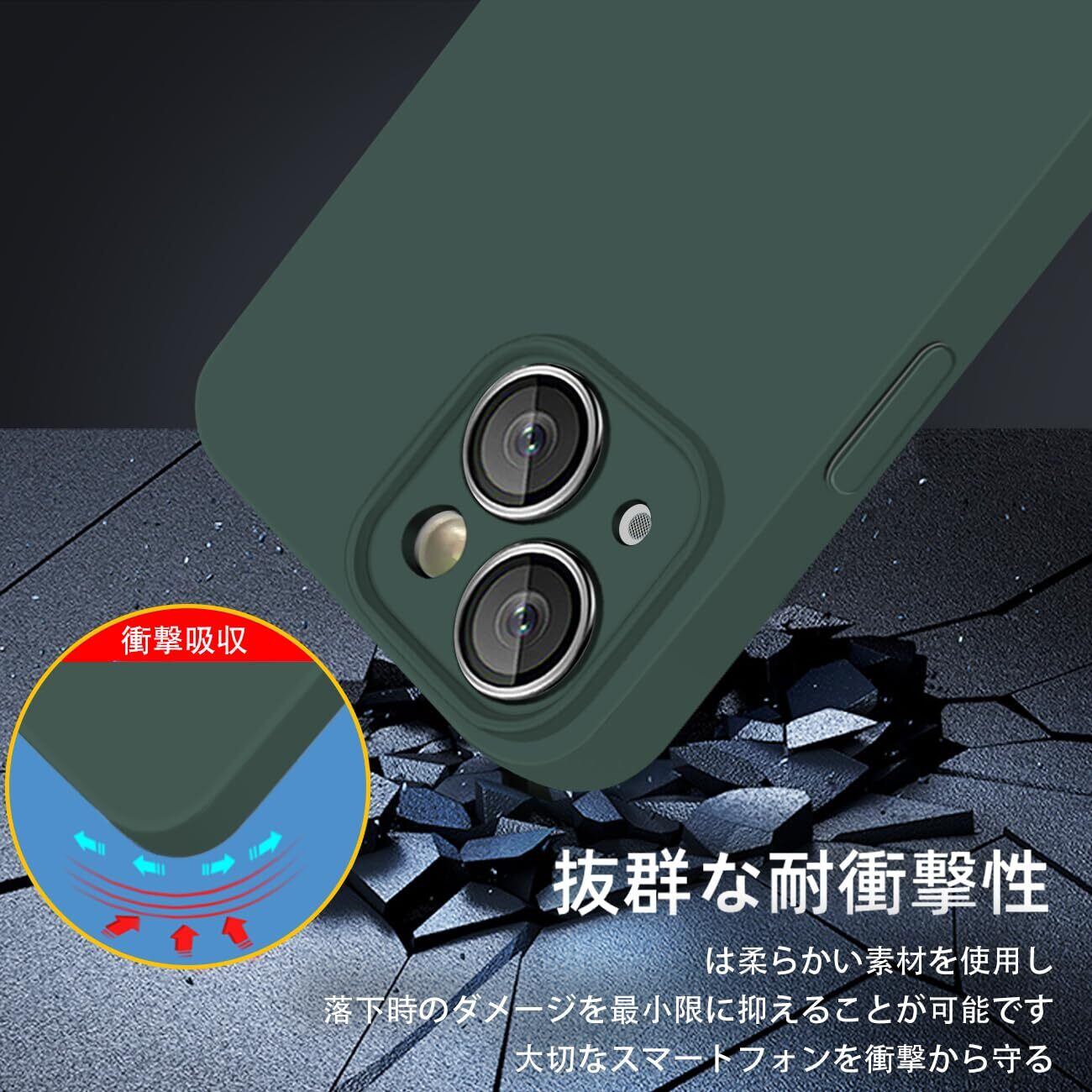 iPhone 15 ケース シリコン 耐衝撃 カバー アイフォン 15 ケース シリコーン スマホケース ストラップホール付き ワイヤレス充電 衝撃吸収 軽量 薄型 柔軟 マット質感 持ちやすい すり傷防止 いphone 15 ケース 6.1インチ用 (グリーン)