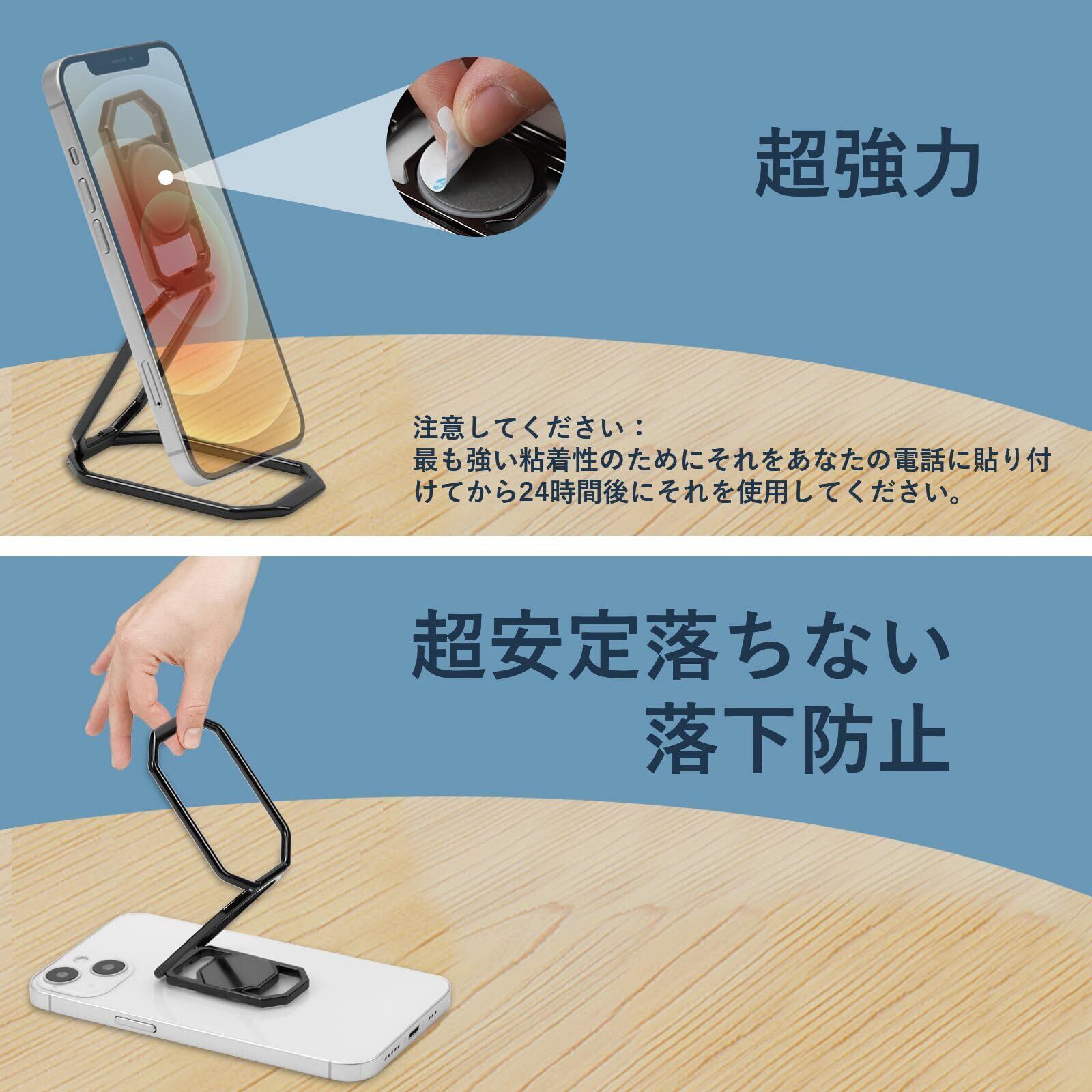 【ユニークなデザイン】スマホリング 3.7mmの超薄型、360°のスイベルと2つの調整可能なアームユニークなデザインにより、他のどの電話リングや電話ホルダーよりも簡単に広い視野角を得ることができます。 注意:滑らかで清潔で乾燥した表面でのみ使用できます(テクスチャード加工の電話ケースはサポートされていません)。 最大限の接着力を得るには、携帯電話に貼り付けてから24時間以内に使用してください。
