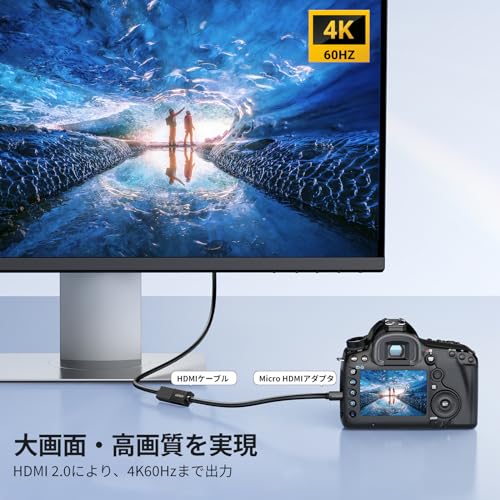 Micro HDMI to HDMI延長ケーブル。本製品はMicro HDMIポート(Type D)が搭載したおデバイスの動画/データなどをHDMIポート(Type A)が搭載したHDTV、モニターに投影できます。お友達やご家族と一緒に大画面でゲームプレイやビデオ視聴などを楽しみます。メモ:本製品はMicro HDMI to HDMIケーブルですが、Micro USB to HDMIに非対応です。本製品を使用すると、別売りのHDMIケーブル(オス-オス)を使用する必要があります。