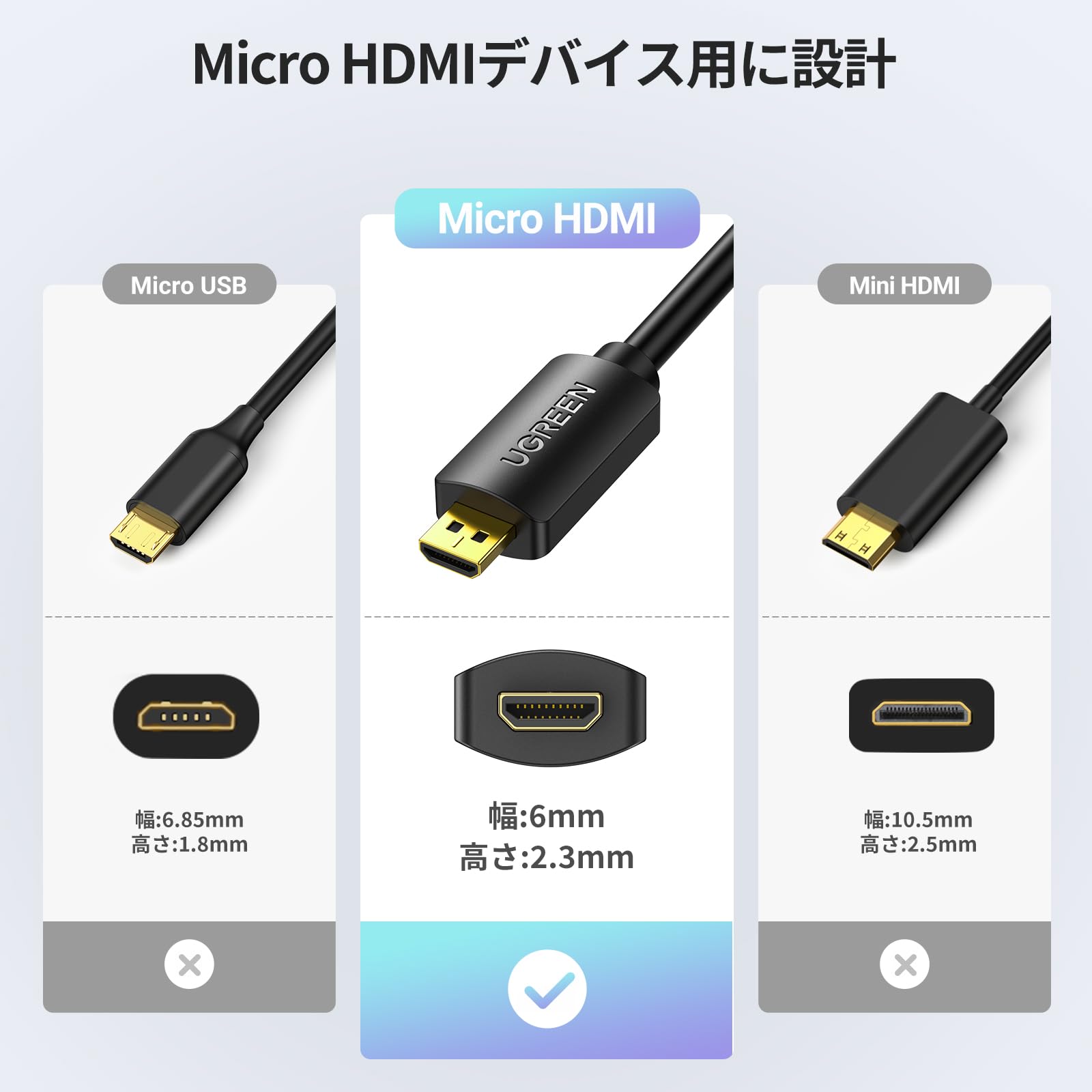 UGREEN Micro HDMI延長ケーブル Micro HDMI to HDMI変換アダプター 4K 3D HDMI Type D Gopro Hero 7 6 5 4 Asus Transformer T100 Lenovo Yogaなど対応 金メッキコネクタ 20cm