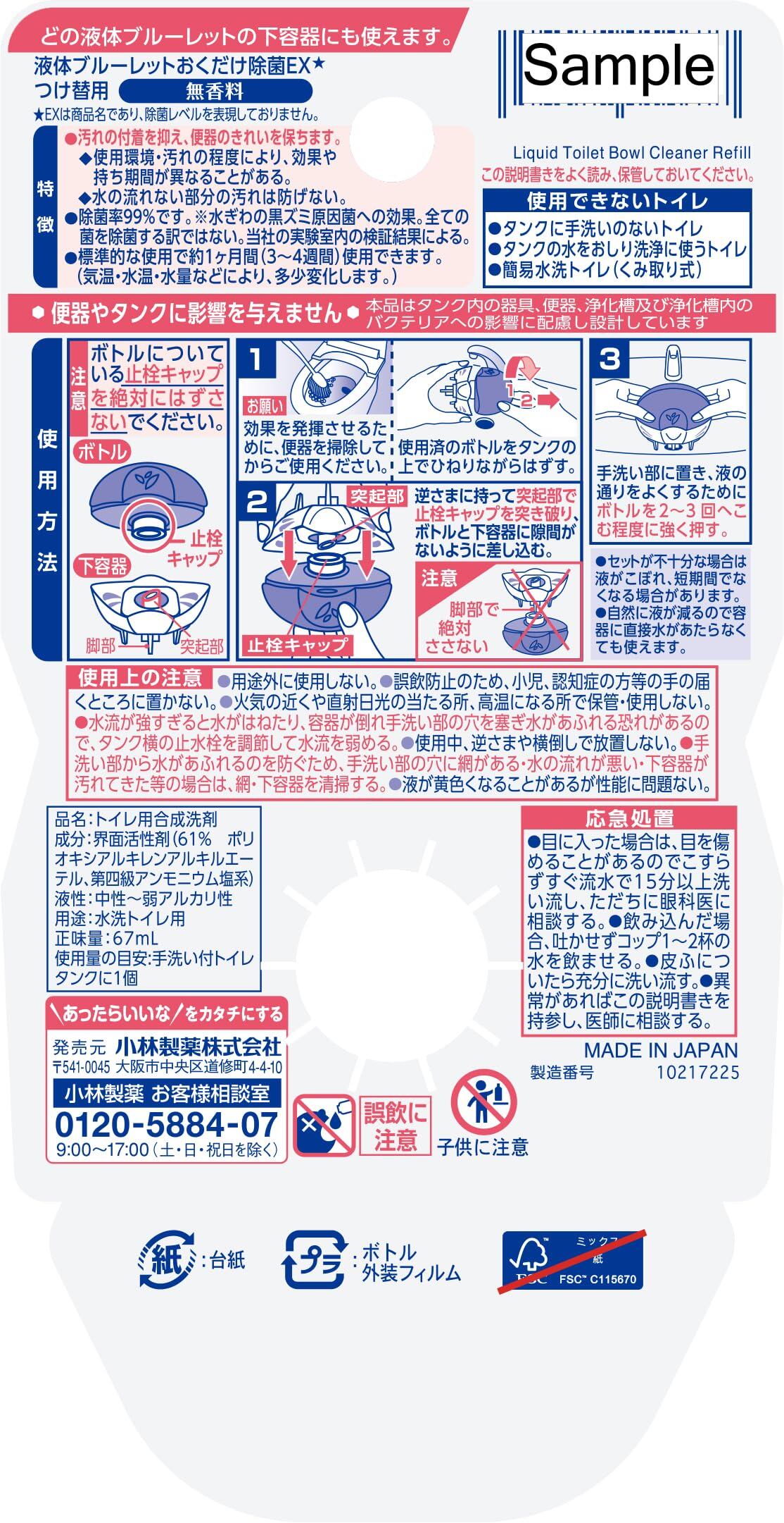 ブルーレット 【まとめ買い】液体おくだけ除菌EXつけ替無香料×8個(おまけ付き)トイレ洗剤 トイレ洗浄剤 黒ずみ トイレ掃除