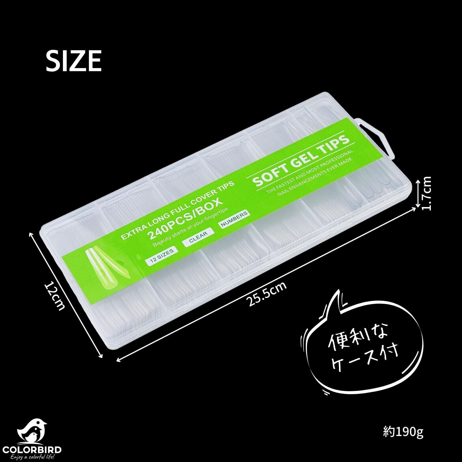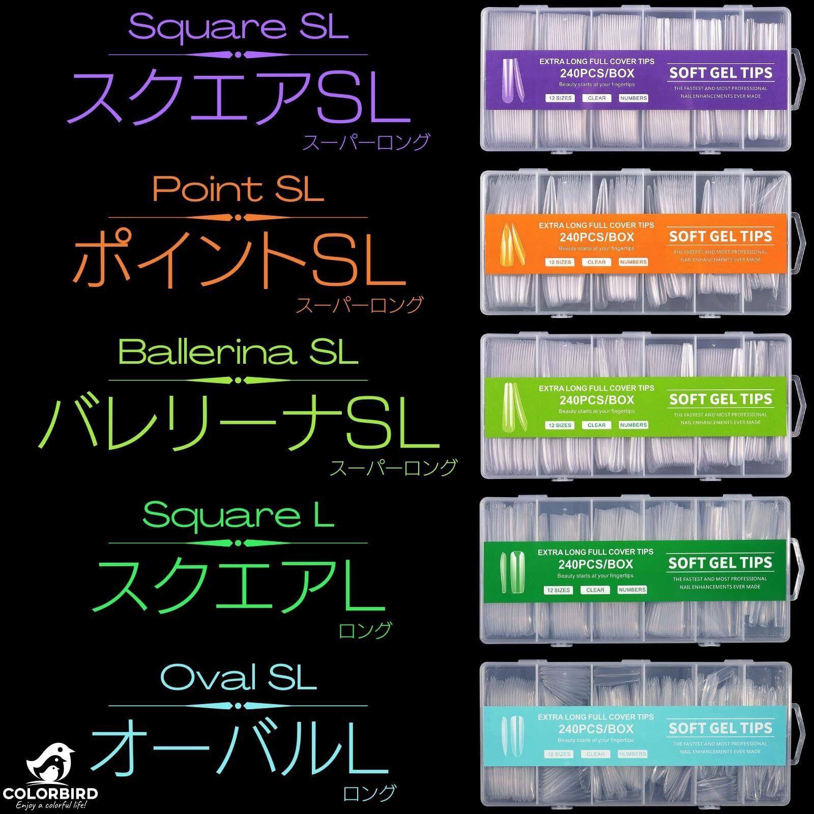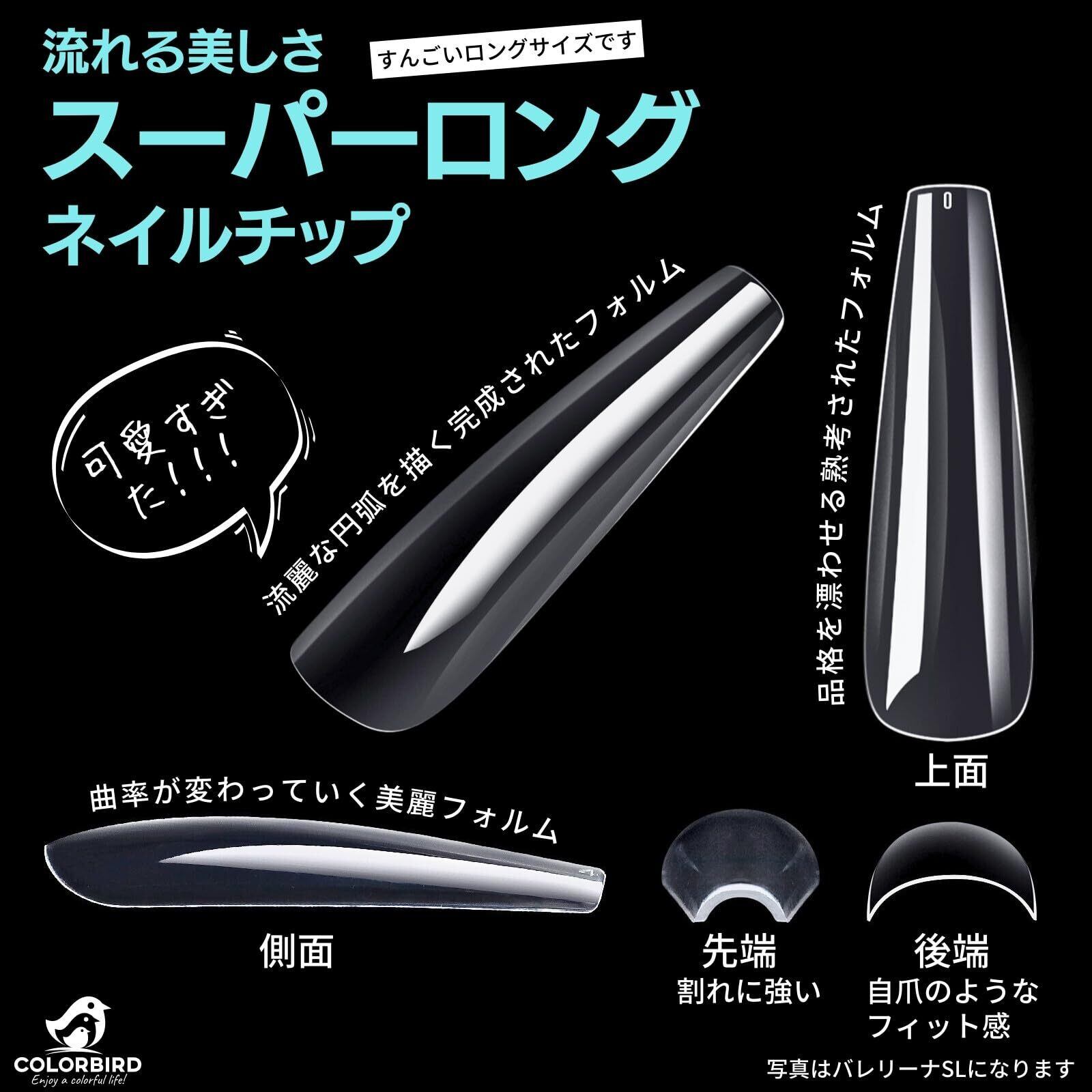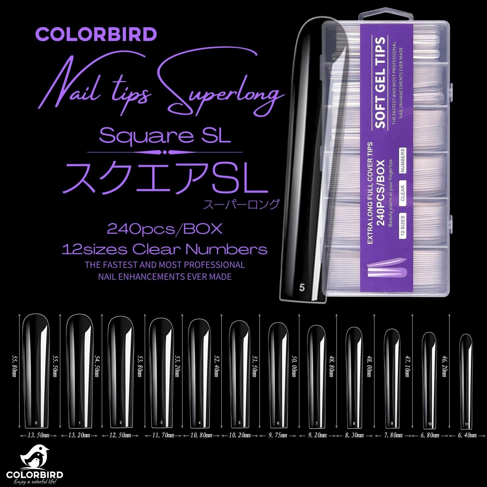 COLORBIRD ネイルチップ ロング スーパーロング 240枚 超鬼ロング クリア ギャルネイル 付け爪 (スクエアSL)