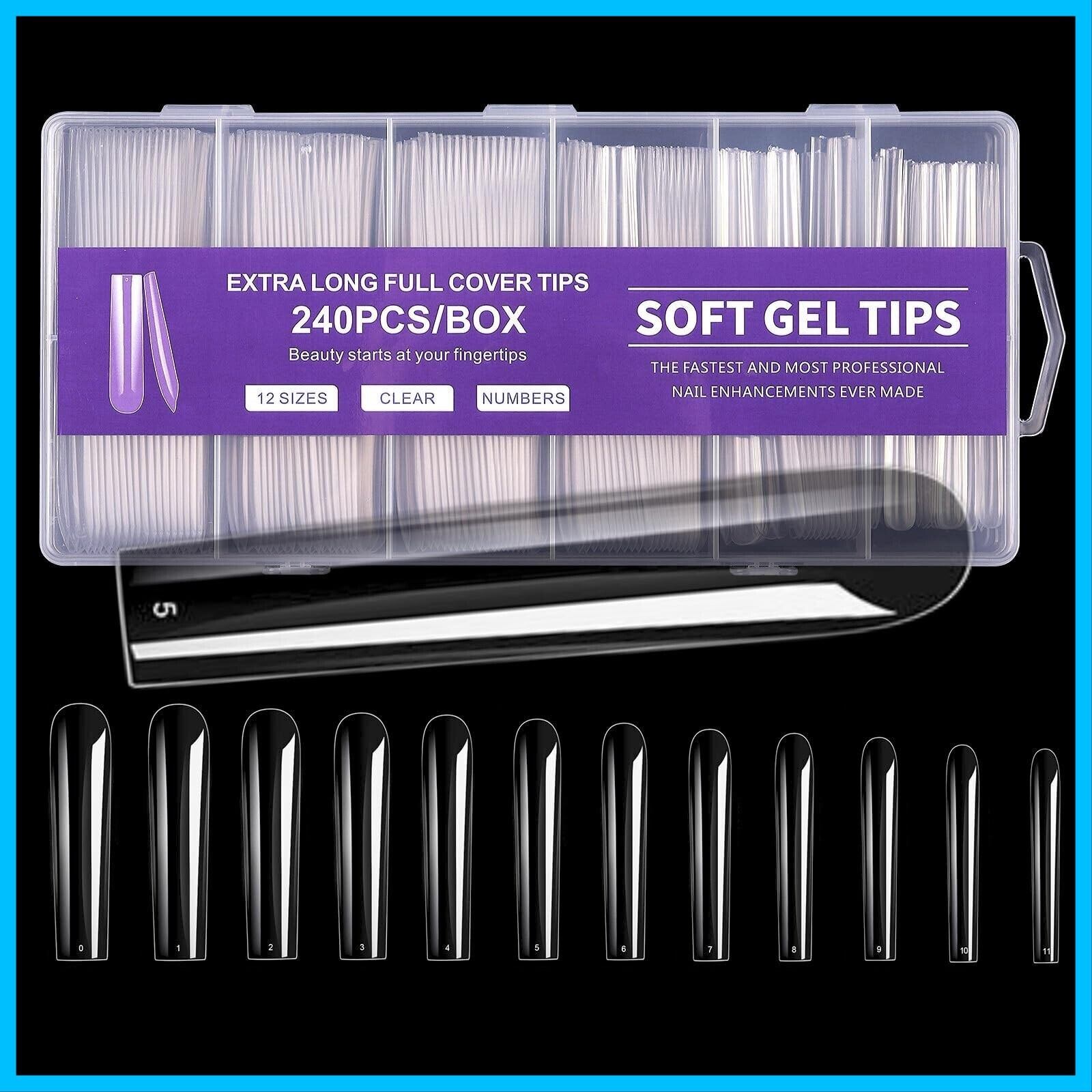 ネイルチップ スーパーロング 12サイズ 240pcs 長くて美しいネイルを楽しめるスーパーロングタイプ。形状はオーバル、ポイント、バレリーナ、スクエアオフ、スクエアからお選びいただけます。