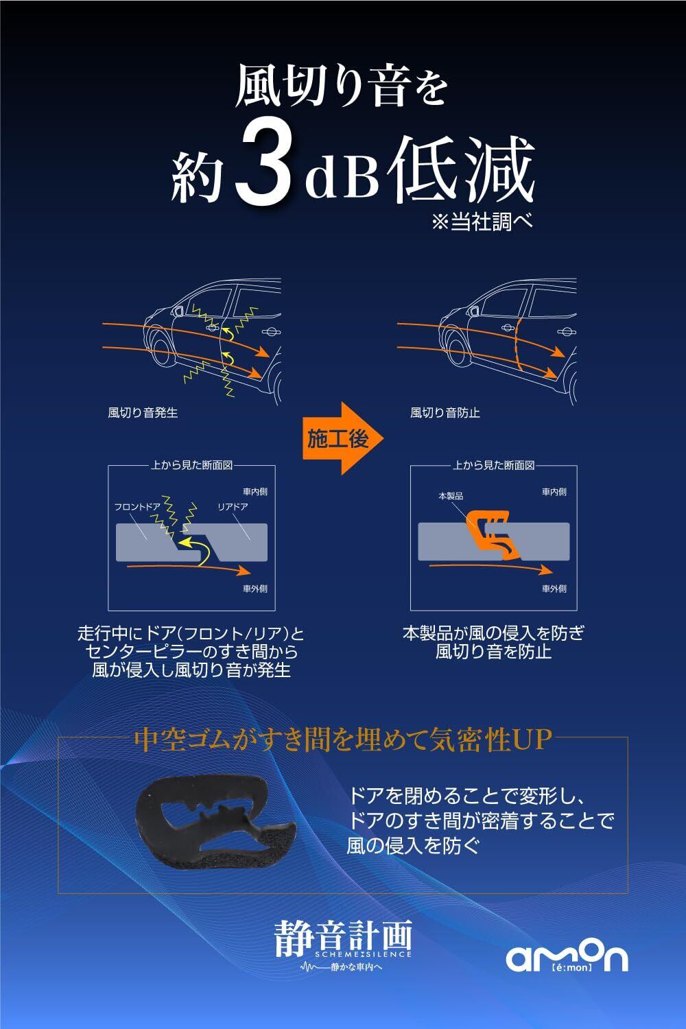 エーモン(amon) 静音計画 風切り音防止モール(ドア2枚分) すき間風の低減 静かな車内 ドアエッジに挟むだけ 遮音 約2.1m 4951