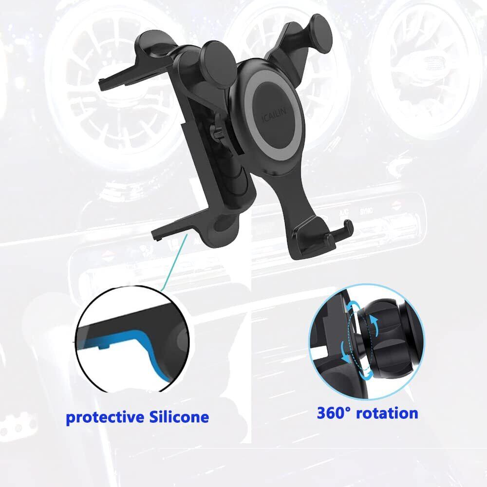 【使い勝手抜群、すべての操作が片手で OK】ICAILIN は常にお客様の立場から考え、より便利な取り付け体験を提供することに努めています。車載スマホホルダーの取り付けをより簡単にするため、エアコン吹き出し口クリップの押し込み部分には滑り止めのシリコン設計を採用し、内蔵バネは収縮型クリップ構造で、片手で簡単に愛車の吹き出し口に嵌め込めます。挿入後、クリップが自動的にしっかりとロックされ、とても簡単です。