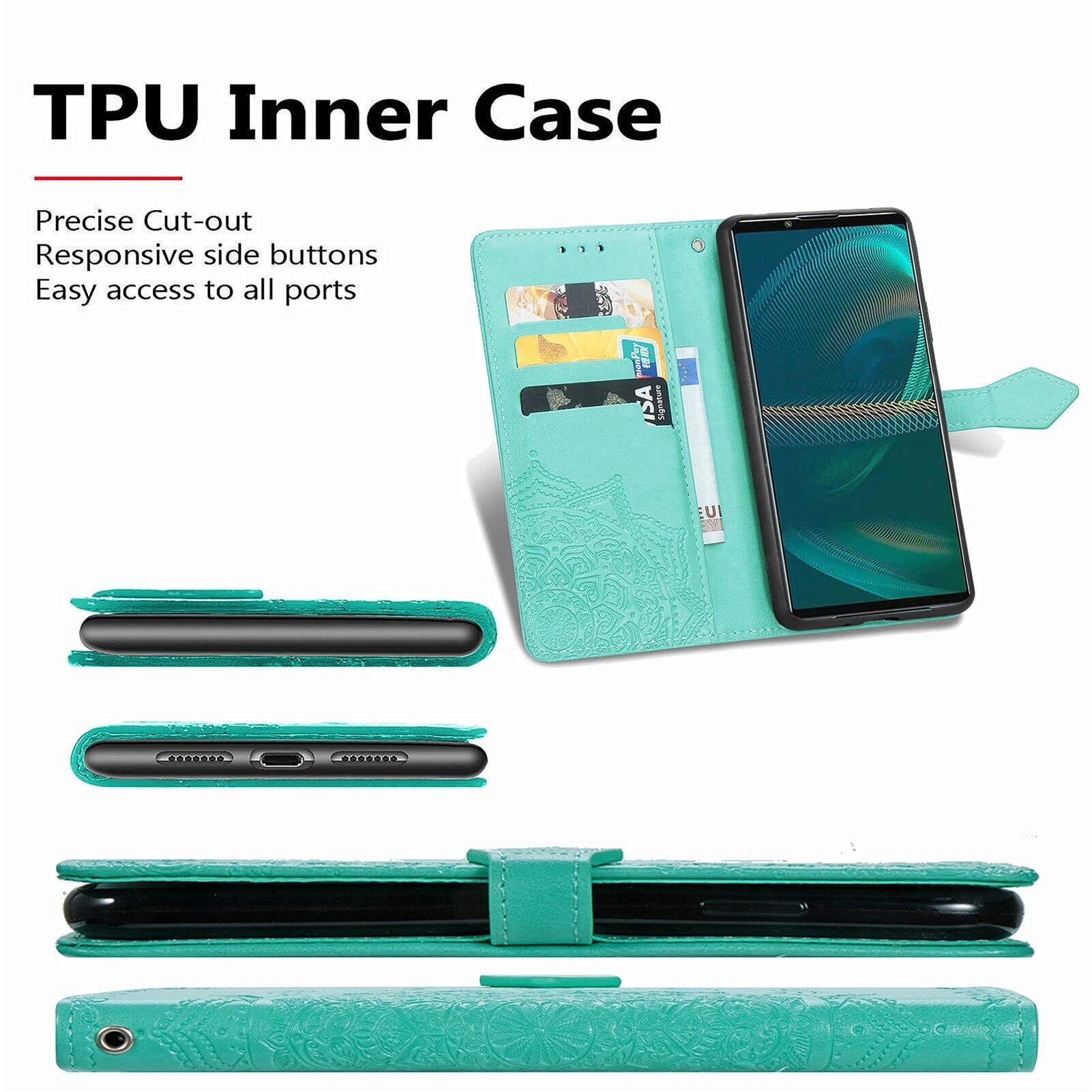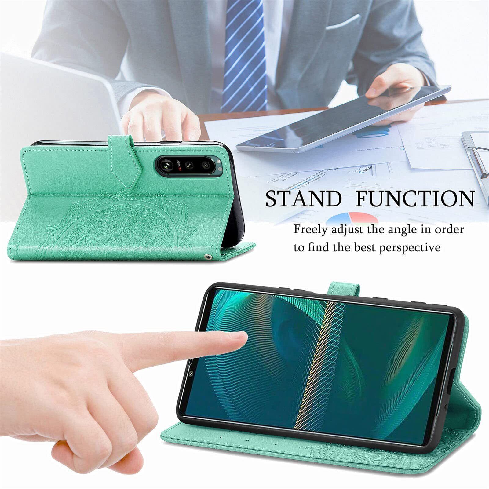 に適用するXperia 5 IV [ SO-54C | SOG09 ] エクスペリア 5 IV ケース 手帳型 ノートブック型携帯電話保護カバー多機能携帯電話ホルスター財布携帯電話ホルダーバンプパターンテクスチャ耐久性摩擦耐性携帯電話ケース男性と女性に適した多色オプション (マンダラグリーン)