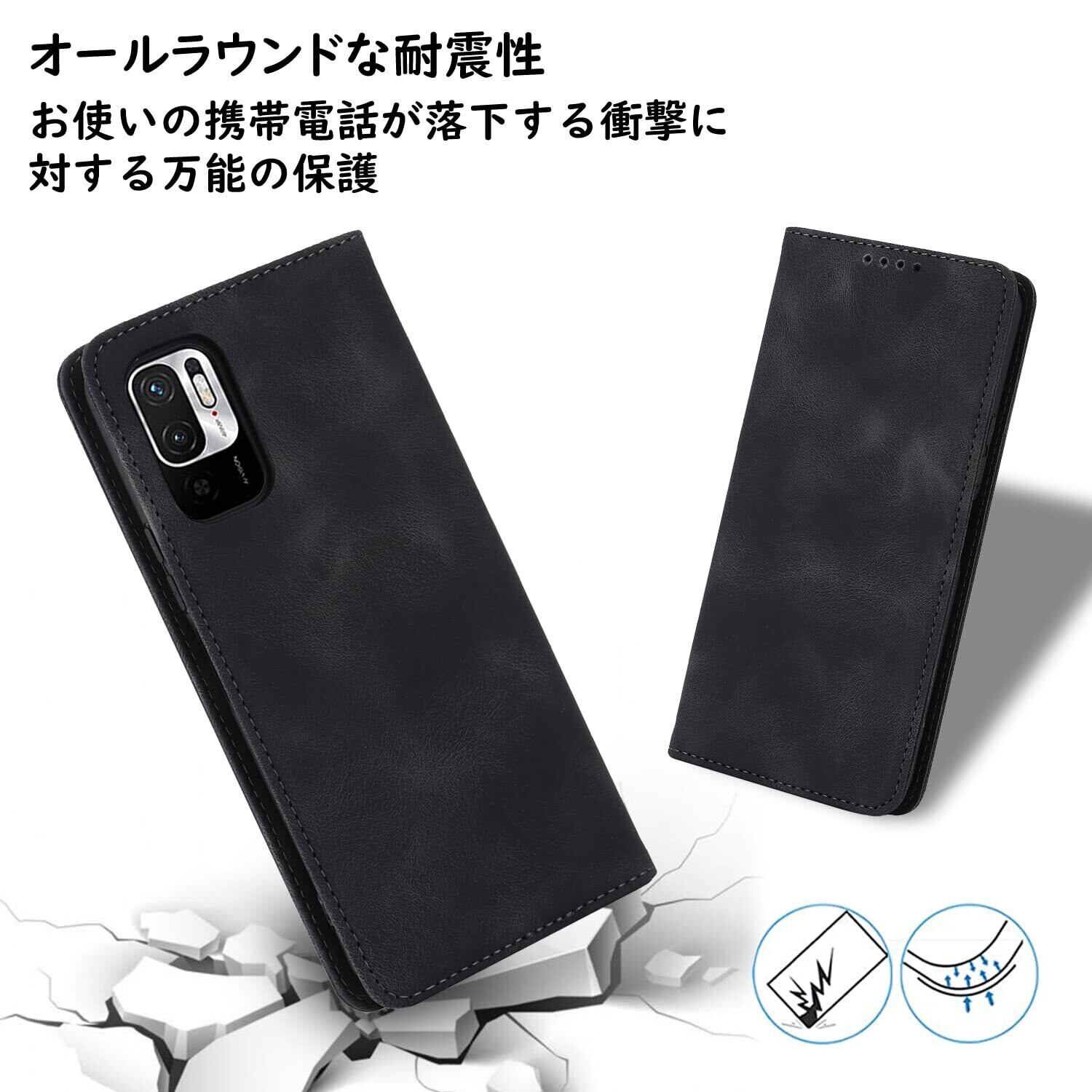 この手帳型ケースは、Redmi Note 10TおよびRedmi Note 10 JEに対応し、高級感あふれるブラックのレザーとスエードの質感が特徴です。耐衝撃設計で大切なスマートフォンをしっかりガードしつつ、スタンド機能も併せ持つため、動画視聴やWeb会議も快適に楽しめます。また、内部にはカード収納ポケットがあり、便利に小物を整理できます。