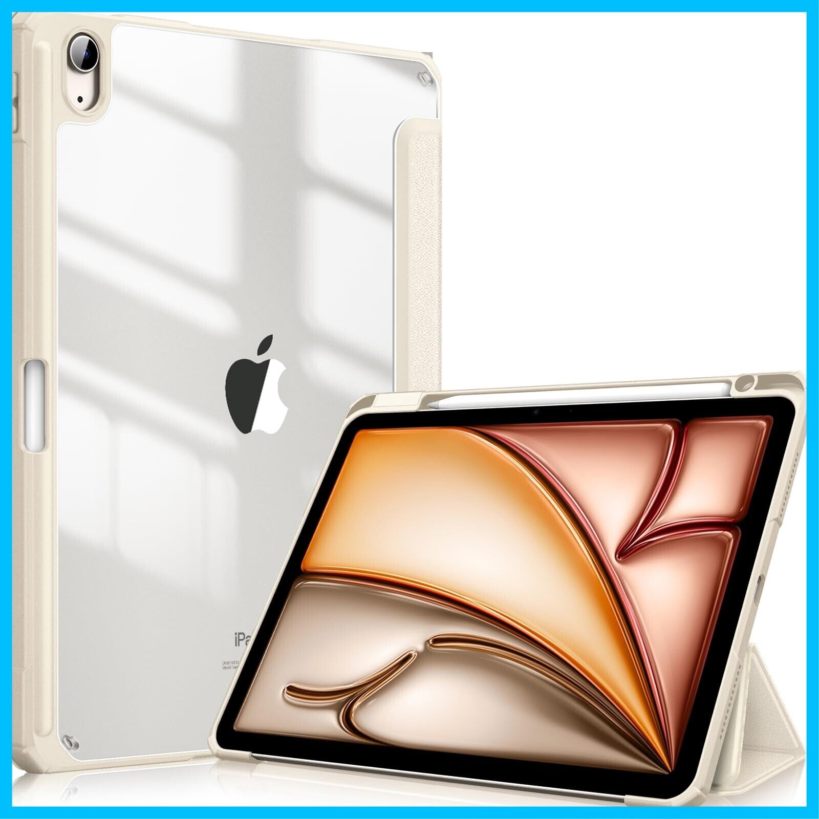 【対応機種】iPad Air 11インチ(M3) 2025発売 第7世代(モデル番号:A3266/A3267/A3270) / iPad Air 11インチ(M2) 2024発売 第6世代 (モデル番号:A2902/A2903/A2904) / iPad Air 5 2022発売 第5世代 (モデル番号:A2588/A2589/A2591) / iPad Air 4 2020発売 第4世代 (モデル番号:A2072/A2316/A2324/A2325) 10.9インチ 専用スマートケース、透明バックカバー。(ご注意:iPad 第11世代 (A16、2025) 11インチ/ 第10世代 (2022) 10.9インチ、iPad Pro 11インチまたはiPadの他のモデルには対応していません、ご注文の際に、お手元機種のモデル番号を確認をお願い致します。)