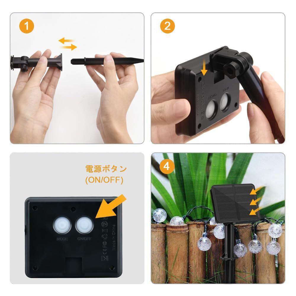 8つの点灯モード:ストリングライトの「Mode」ボタンを押して、合計8点灯モードが簡単に交換できます。8種類の点灯モデルで、パーティー、祝日に暖かい雰囲気を作ることができます。