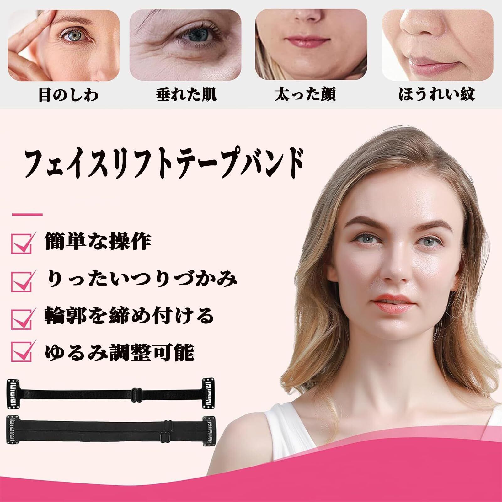 【伸縮性と調節可能】このフェイスリフトテープバンドはクリップが付いており、強化と引き締めに役立ちます、調節可能なスキンリフティングストラップ、着用者は幅を調整できます。
