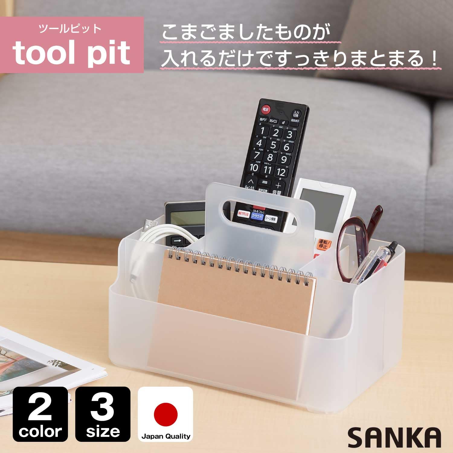 サンカ ツールピット 卓上収納 Mサイズ クリア (幅23.5x奥行15.7x高さ10.6cm) スライド式ハンドル付き 積み重ね可能 メイクボックス リモコンラック コスメ化粧品収納 収納ボックス おしゃれ 卓上 日本製 収納ケース squ+ NTP-MCL