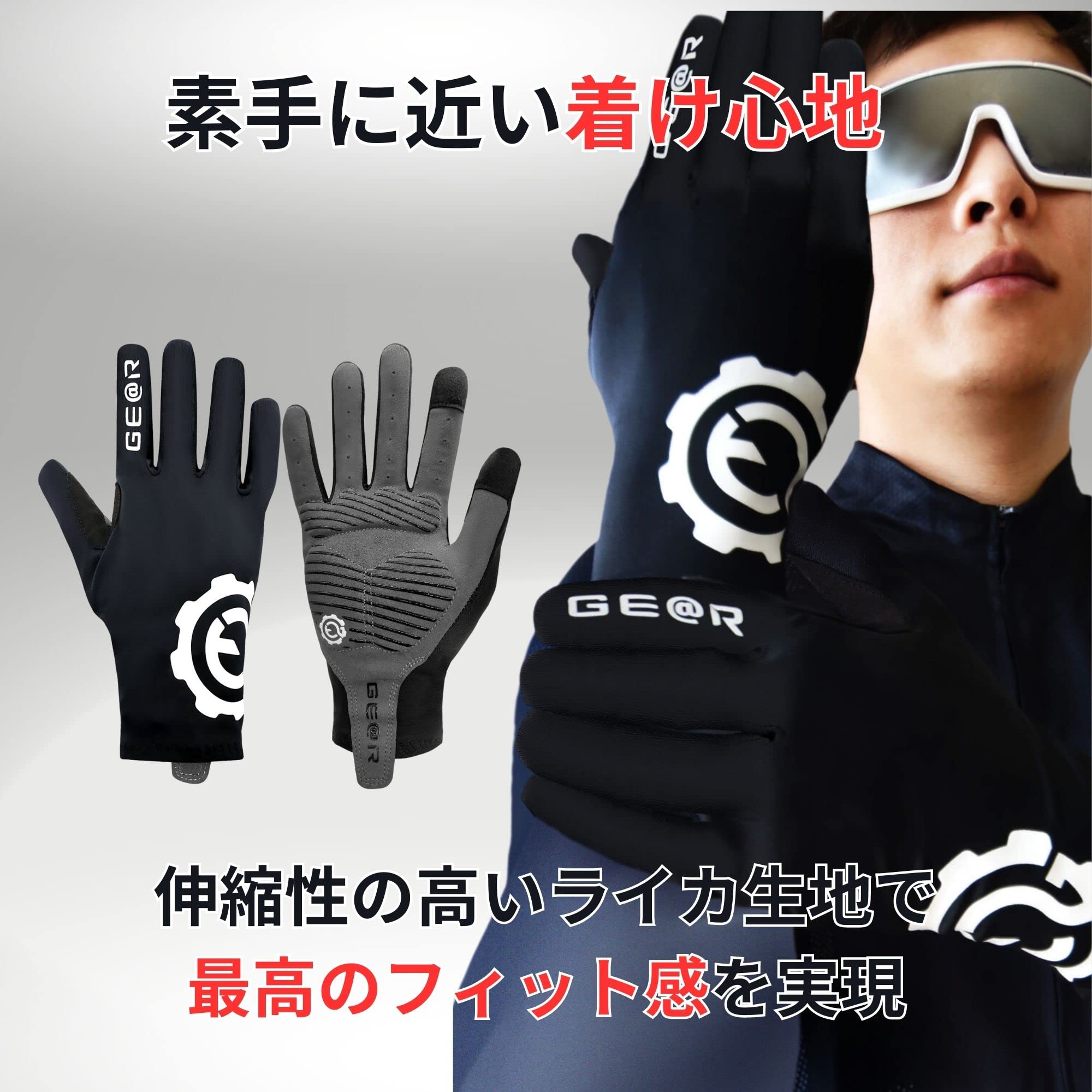 (ギアトル) サイクルグローブ ぴったりfit 指有り Mサイズ サイクリンググローブ ロードバイク 自転車 グローブ 手袋 メンズ レディース ユニセックス 春 秋