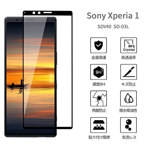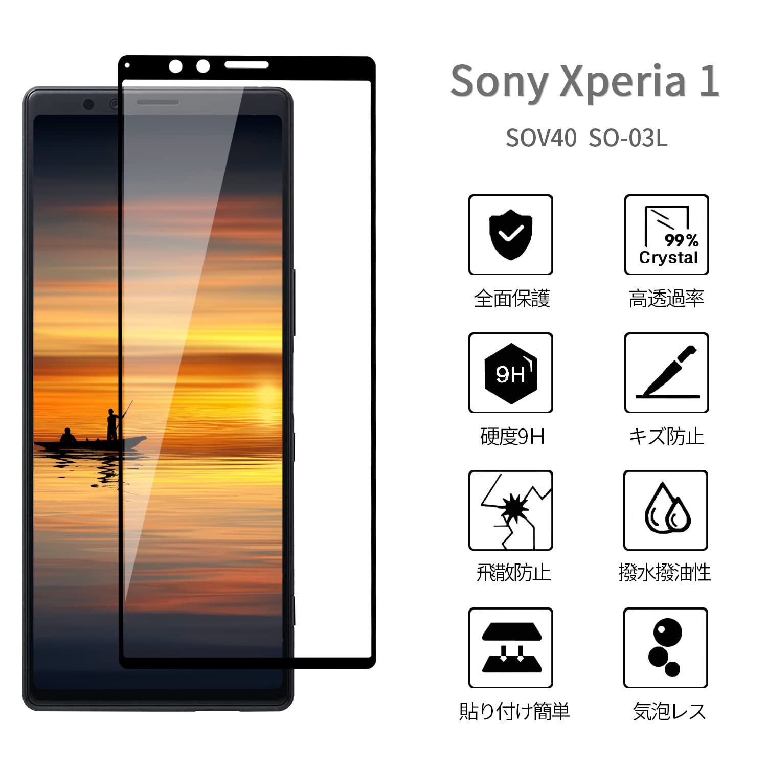 【2枚入り】 Xperia 1 用 ガラスフィルム 高透過率 全面保護 SOV40 SO-03L フィルム エクスペリア 1 強化ガラス 液晶保護フィルム 【干渉しない/指紋防止/貼り付け簡単/気泡ゼロ】
