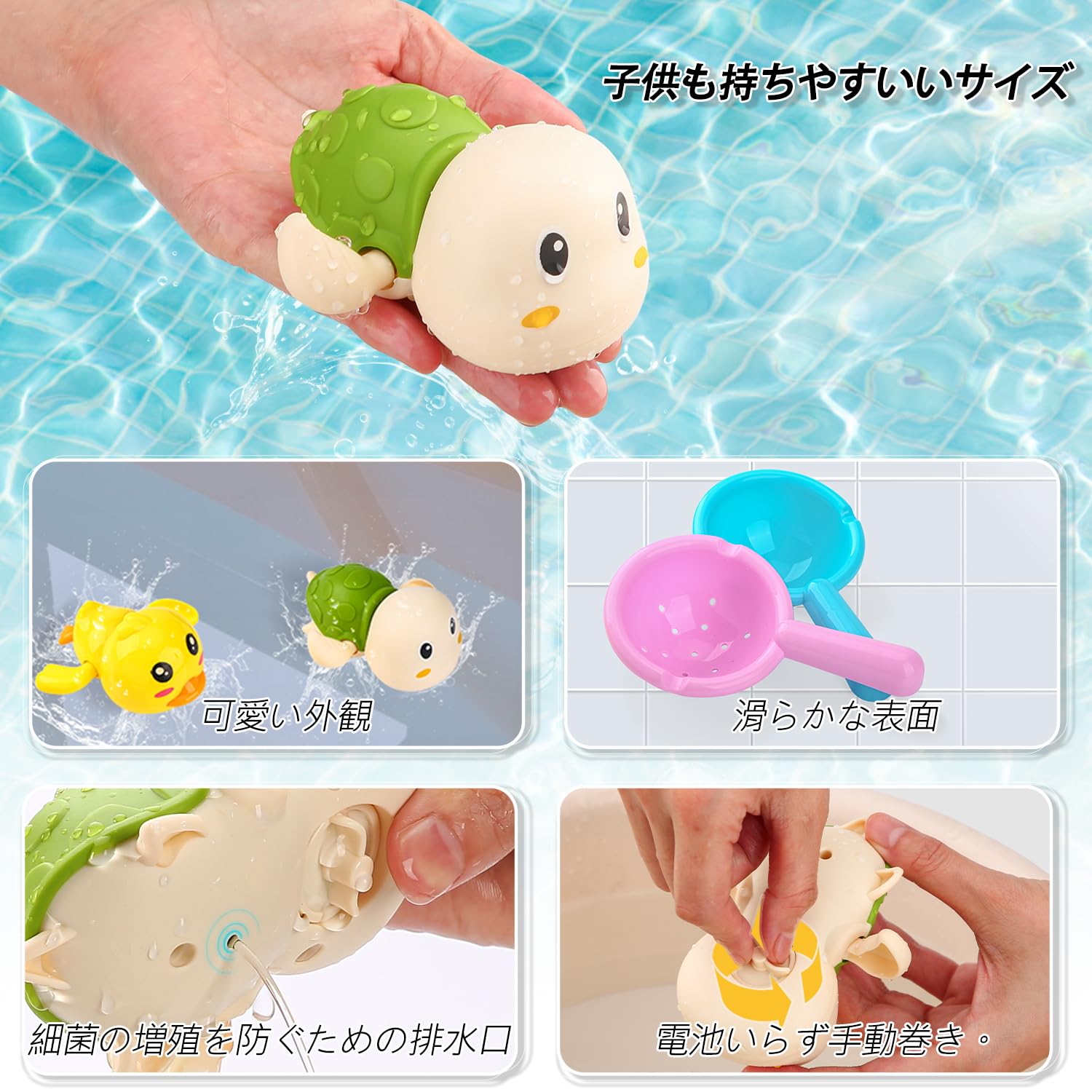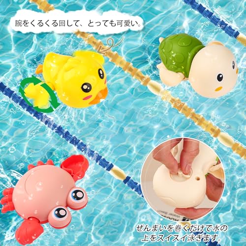 【面白いねじ巻きおもちゃ】見た目が可愛らしいだけでなく、パワフルです。軽く回せば水の上をスイスイ泳ぎます。お子様の興味を引き出し、入浴時間を楽しんでいただけるようにします。