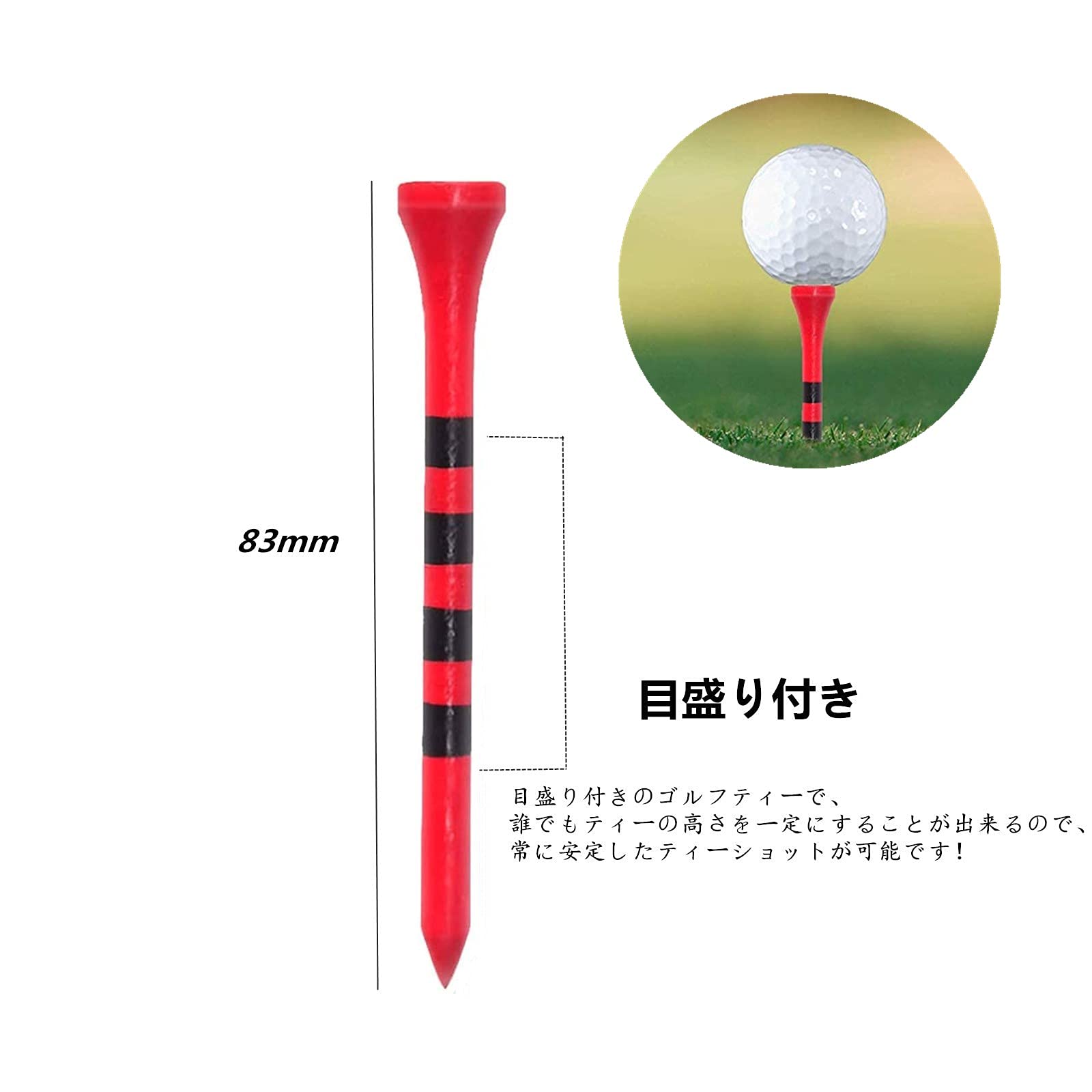 YFFSFDC ゴルフティー 83mm 高さ調整可能 ロングティー ウッドティー 目盛り付き ゴルフ 用品 コンペ アクセサリー 100本セット (レッド)