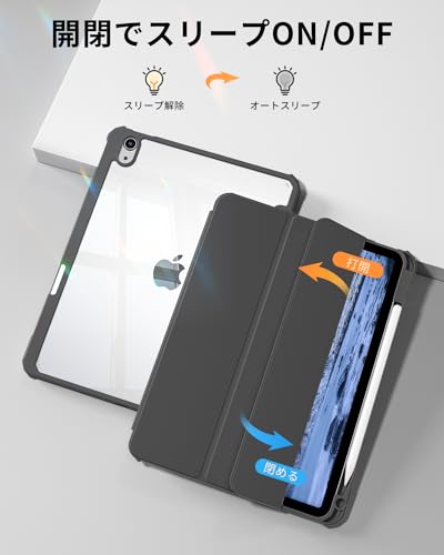 SQBEBS iPad 11世代 ケース A16 (2025) iPad 第11/10世代 10.9インチ (2022) 透明バックカバー ペンシルホルダー付き 三つ折りスタンド Touch IDとオートスリープ機能対応 軽量 薄型 傷つけ防止 PU合成レザー TPU ブラック