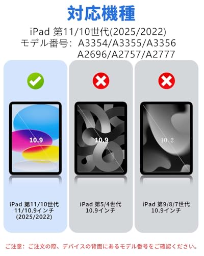【対応機種】SQBEBS ケース iPad 11世代 (A16) 11インチ 2025 / 第10世代 10.9インチ 2022 に適用します。 (モデル番号:A3354/A3355/A3356/A2696/A2757/A2777)。ご注意:他のiPadモデルとは互換性がありません、ご注文の際、デバイスの背面にあるモデル番号をご確認ください。