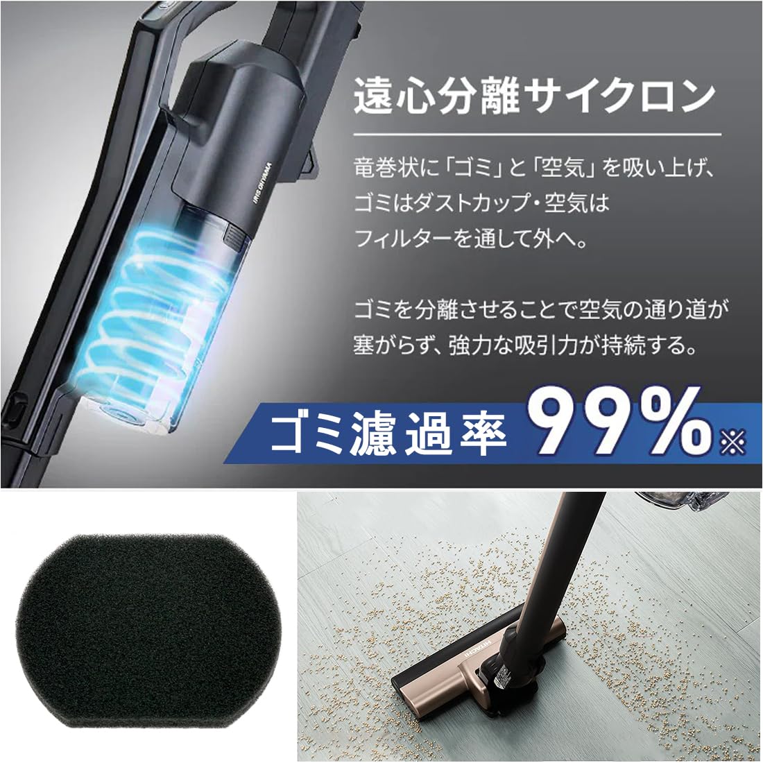 【効率的なフィルター】掃除機 フィルターは純正品と同じポリウレタン材を採用するため、必要な通気性を持たせる上に、抜群な濾過率はPM2.5、ほこり、花粉、砂など小さなものをちゃんと捕まえます。更に、水で洗っても形崩れないから、完全に乾いた後、再利用も可能です。