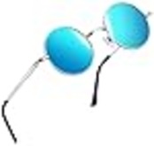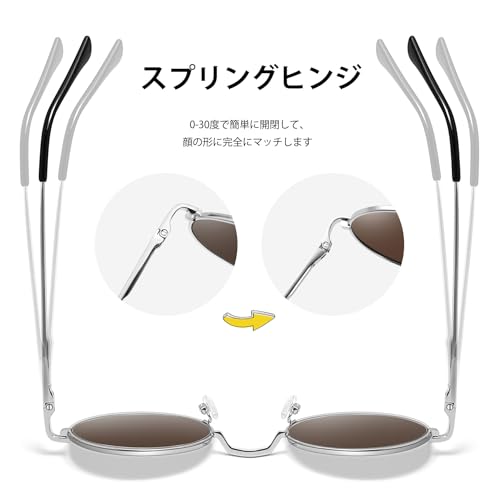 [Joopin] サングラス メンズ 偏光 丸型 ラウンド 偏向レンズ レディース UV400保護 紫外線カット 軽量 釣り 運転用 登山(シルバー/ブルー)