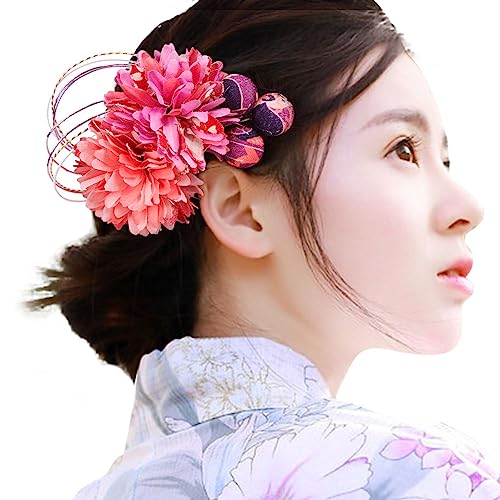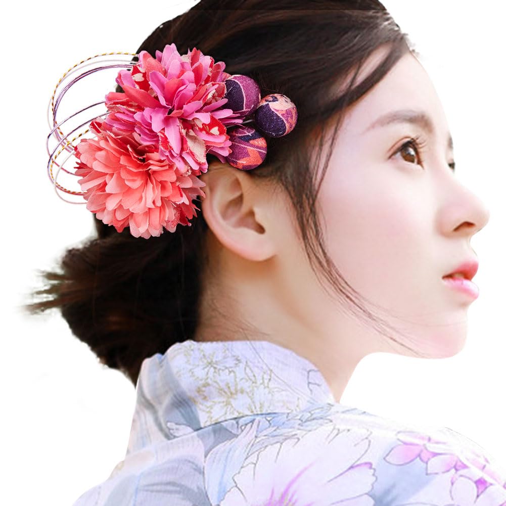 OTAKUMARKET 髪飾り 浴衣 成人式 花 七五三 袴 着物 髪 飾り 和装 卒業式 結婚式 振袖 髪留め 水引き ヘアアクセサリー 1枚(マゼンタ)